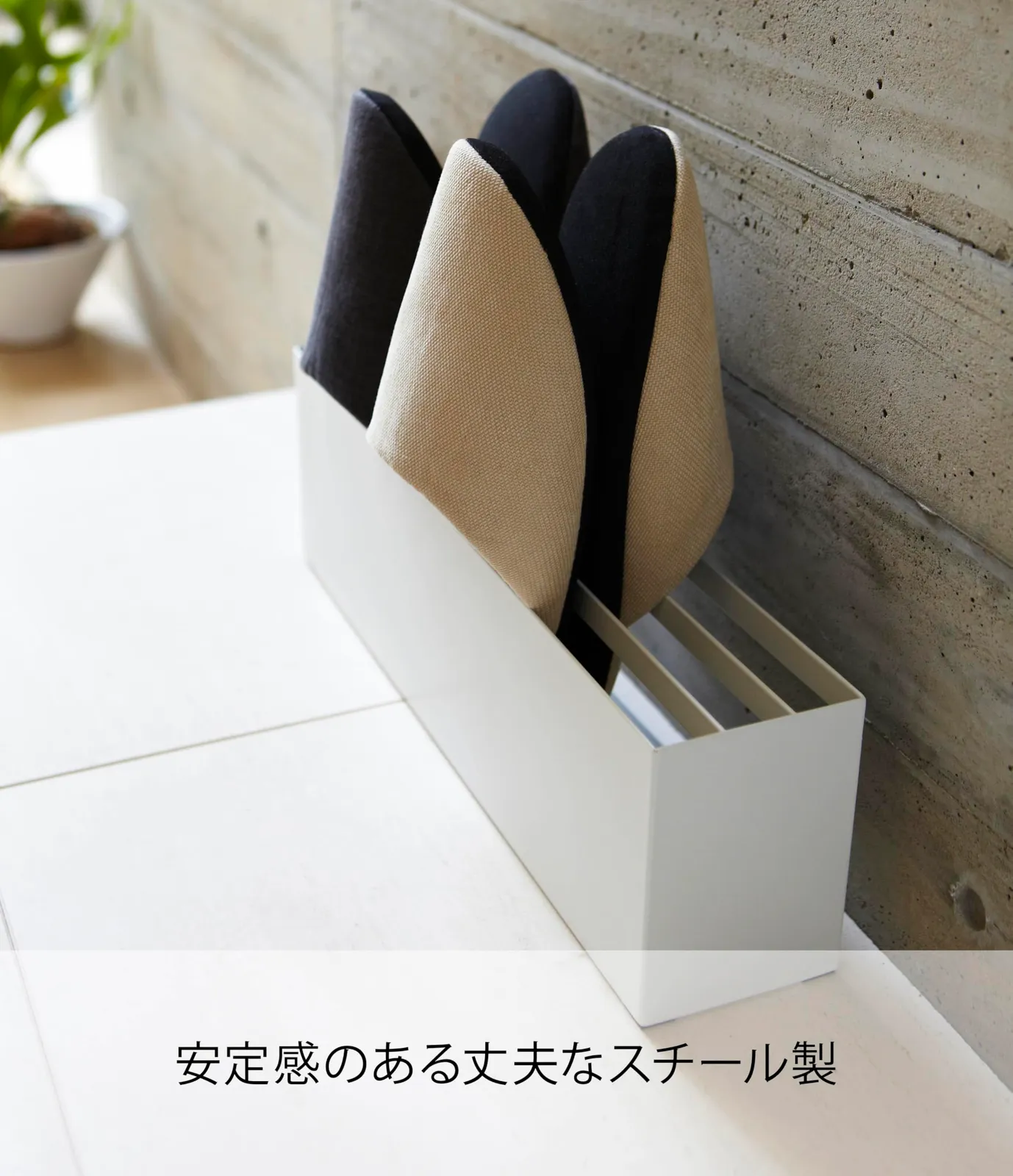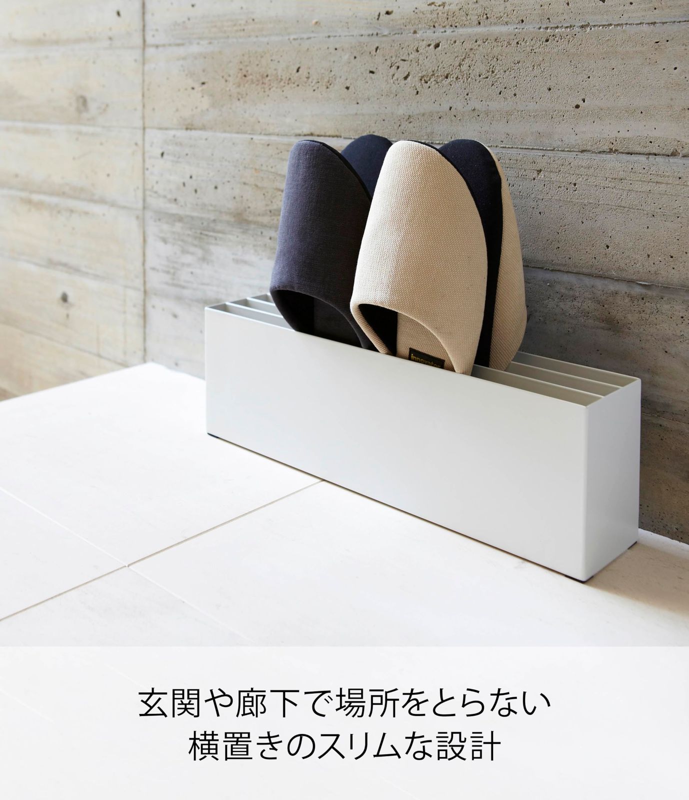 ●壁に沿うようにスッキリ収まるヨコ型スリッパラック