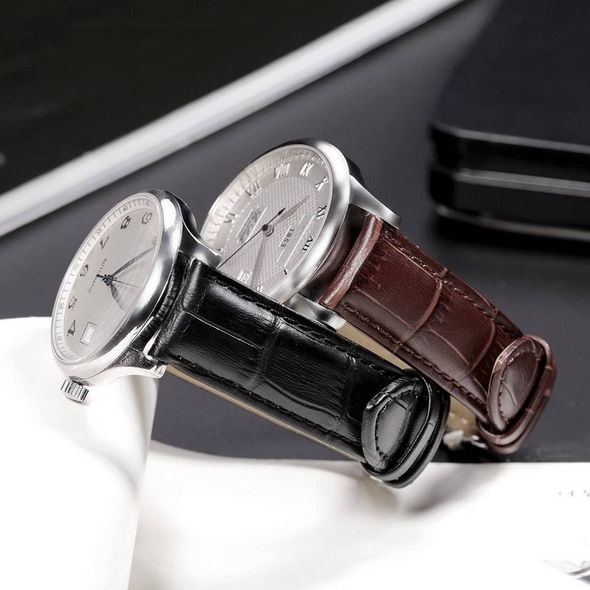 【素材】高級感を演出するクロコ型押しがビジネススーツを引き立て、丈夫で肌触りのよい。強度・耐久性があり、縫製が丁寧で、安心して長くご愛用いただけます。防水性と耐久性のある牛革時計ベルト、使い込む程腕に馴染む素材を使用、しっかりとした造り滑らかな付け心地で経年劣化も楽しんでいただけます!高級感のあるワニの押し型でオフィスでのONタイムからプライベートシーンまで幅広くお使い頂けます