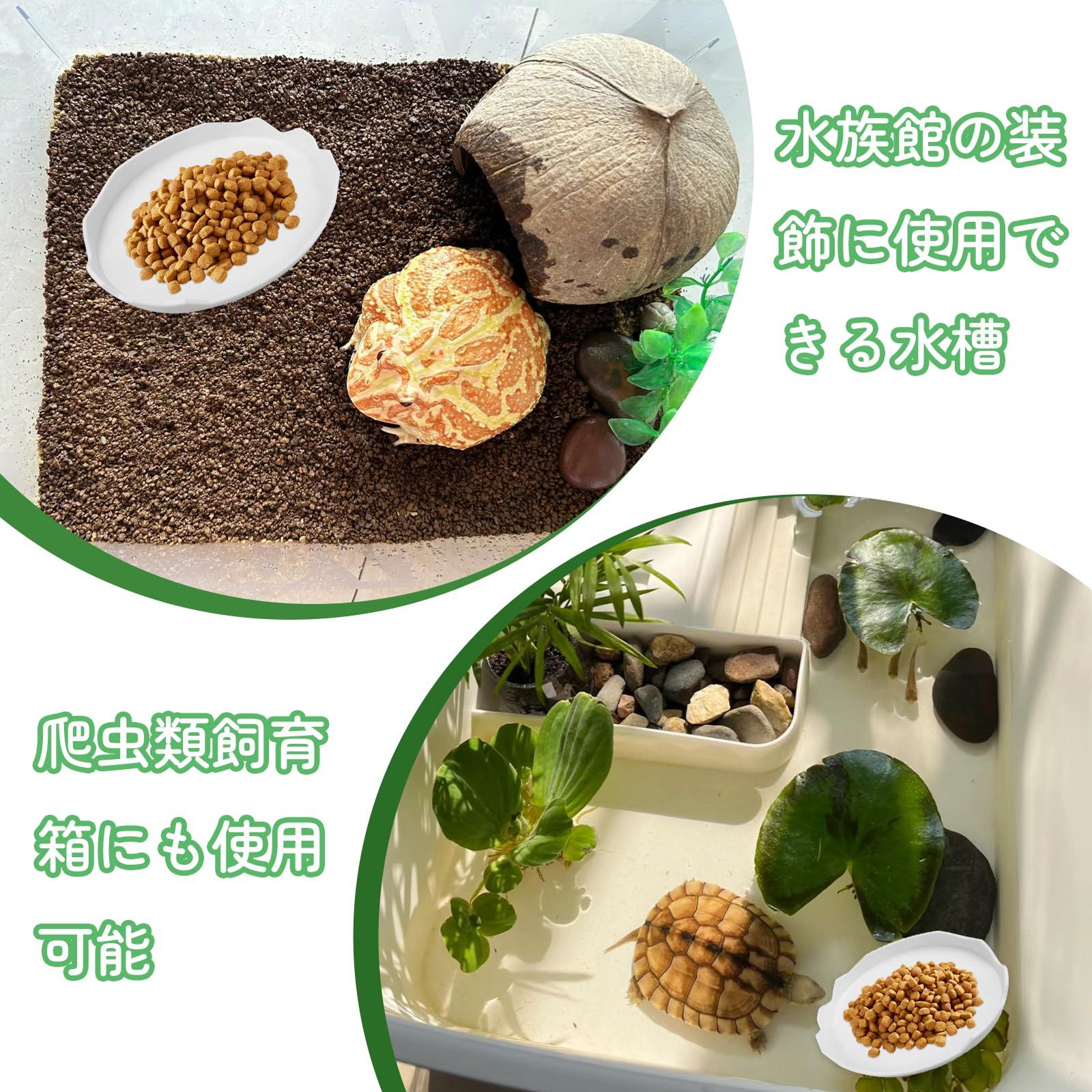 【幅広い用途】爬虫類水皿は、カメ、トカゲ、ハムスター、カエル、テラピン、ヤモリ、クモ、サソリ、ヘビなどの爬虫類の小動物に最適。爬虫類ボウルは、装飾水族館の水槽や爬虫類繁殖箱に使用することができる。