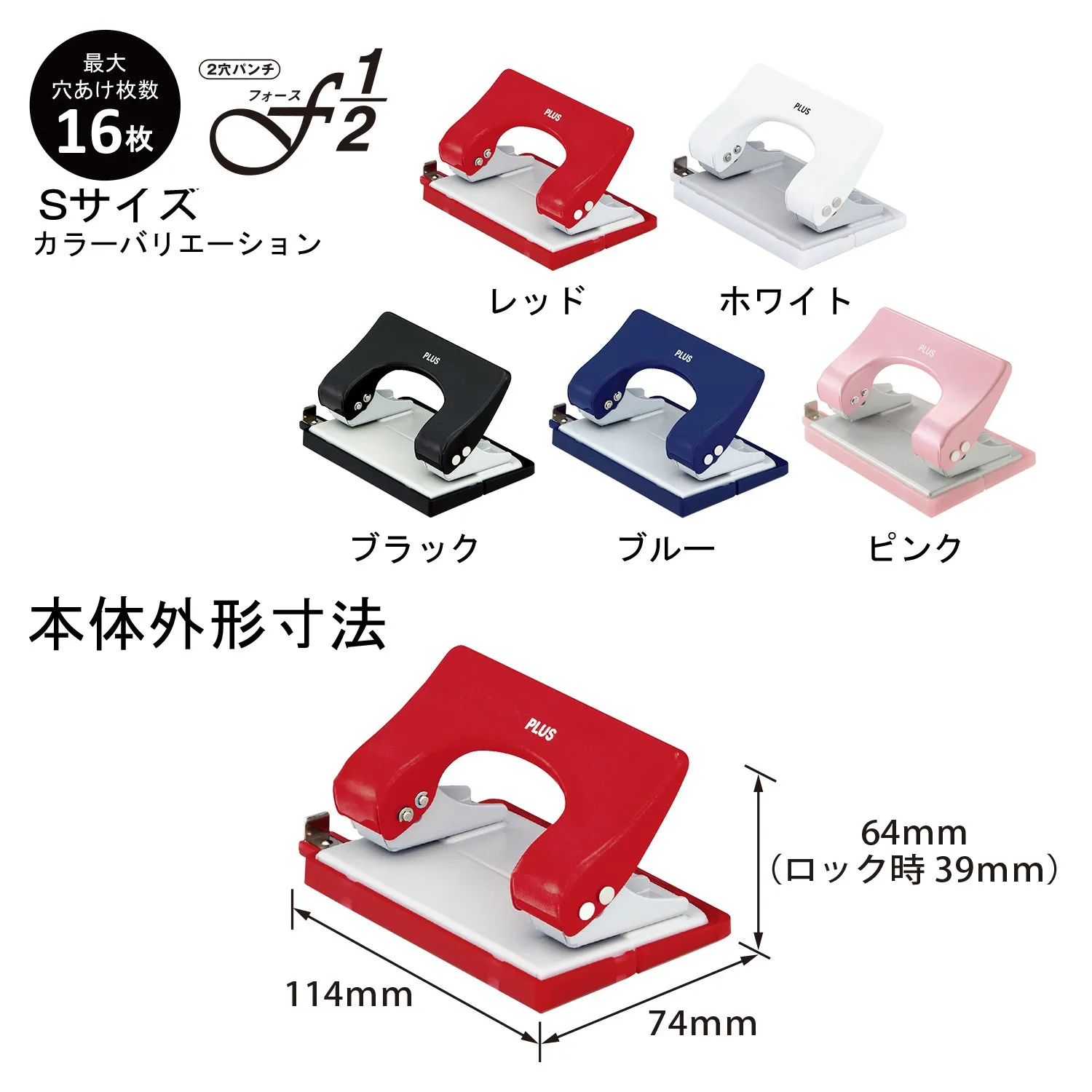 プラス パンチ フォース1/2 2穴 穴あけ枚数16枚 Sサイズ PU-816A レッド 30-695