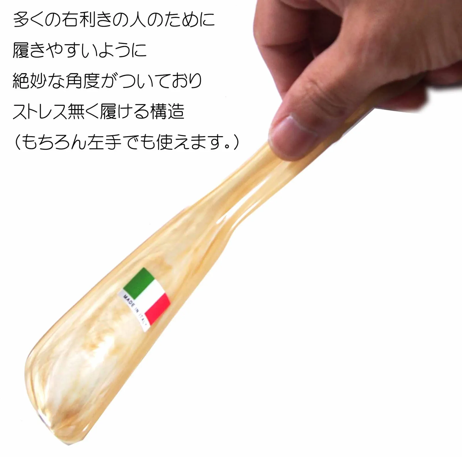 近藤 ドアストッパー・くつべら・玄関小物 アメ色 ミディアム ショート 24cm×4cm ハンドシューホーン C type 色: アメ色 サイズ:約24cm×4cm 素材:プラスティック 原産国:イタリア 革靴の本場、イタリアからやってきた、軽量で使いやすい形状のおしゃれなハンド靴べら。 カカトにすっと入り靴を滑らかに履くことのできる、使いやすさを追求したカーブデザイン。 かさばらないミディアムショートtypeなので靴棚などに収納しておくこともできる。