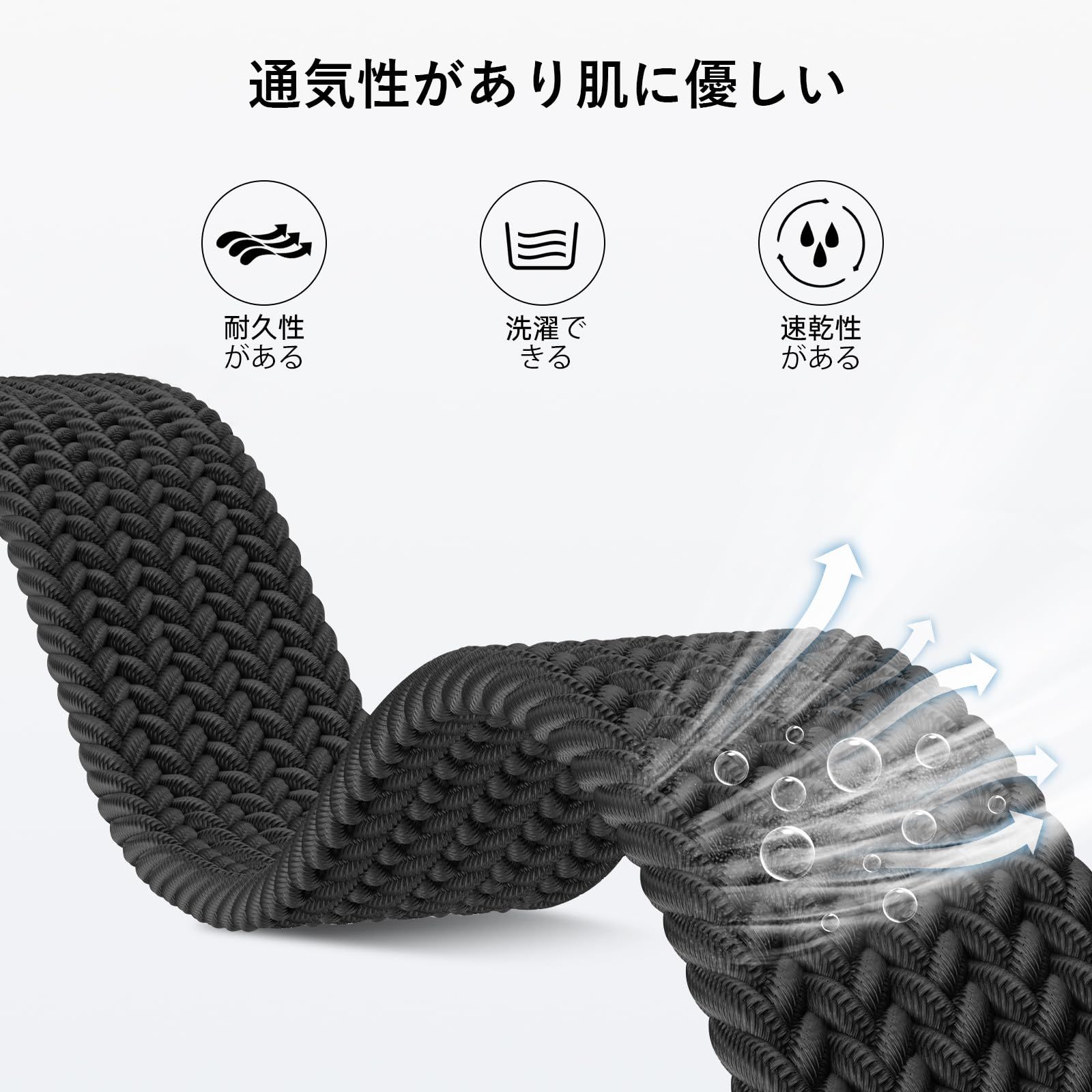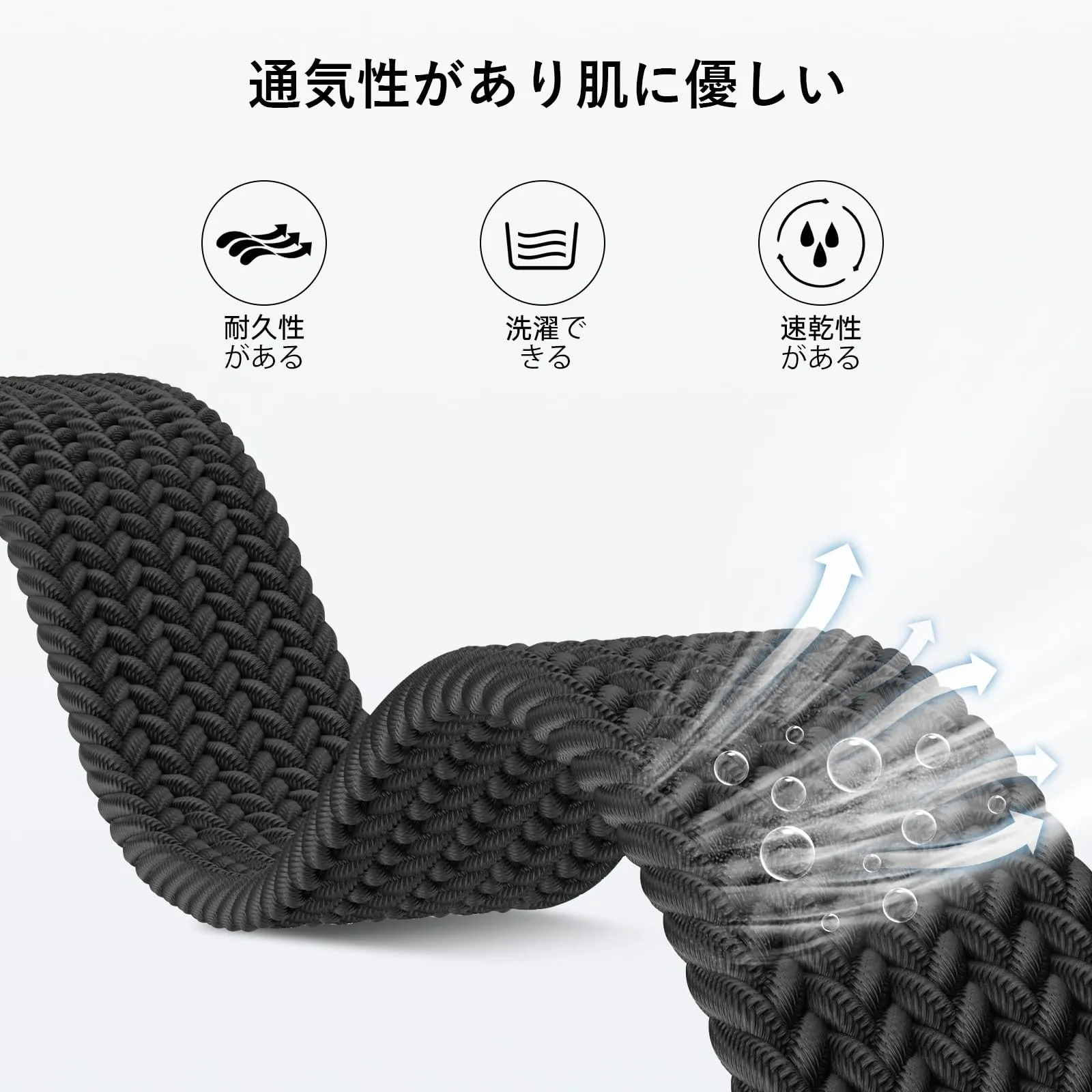 AGUPERFIT クイックリリース バンド 20mm 22mm、エレガントで快適な 伸縮性ベルト 無段階に調整なステンレススチールバックル付き スマートウォッチ交換ベルト 時計交換用バンド (22mm ブラック)