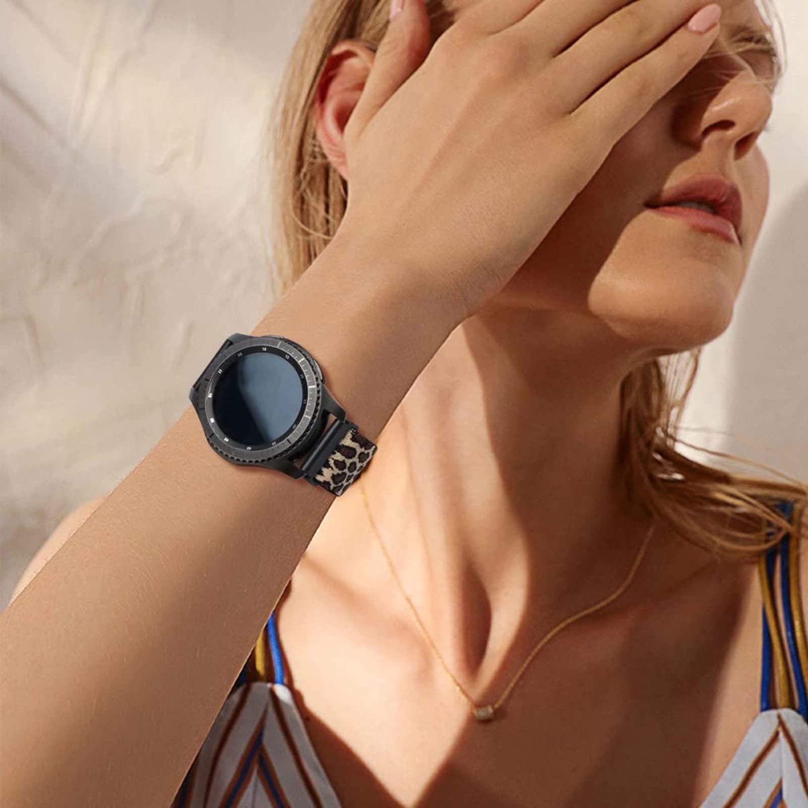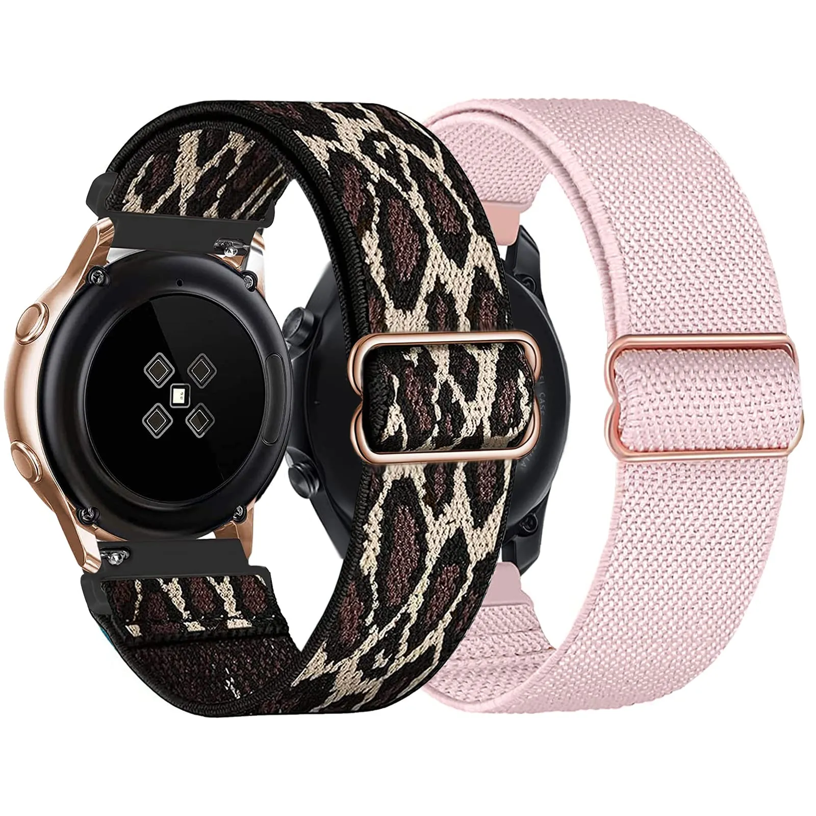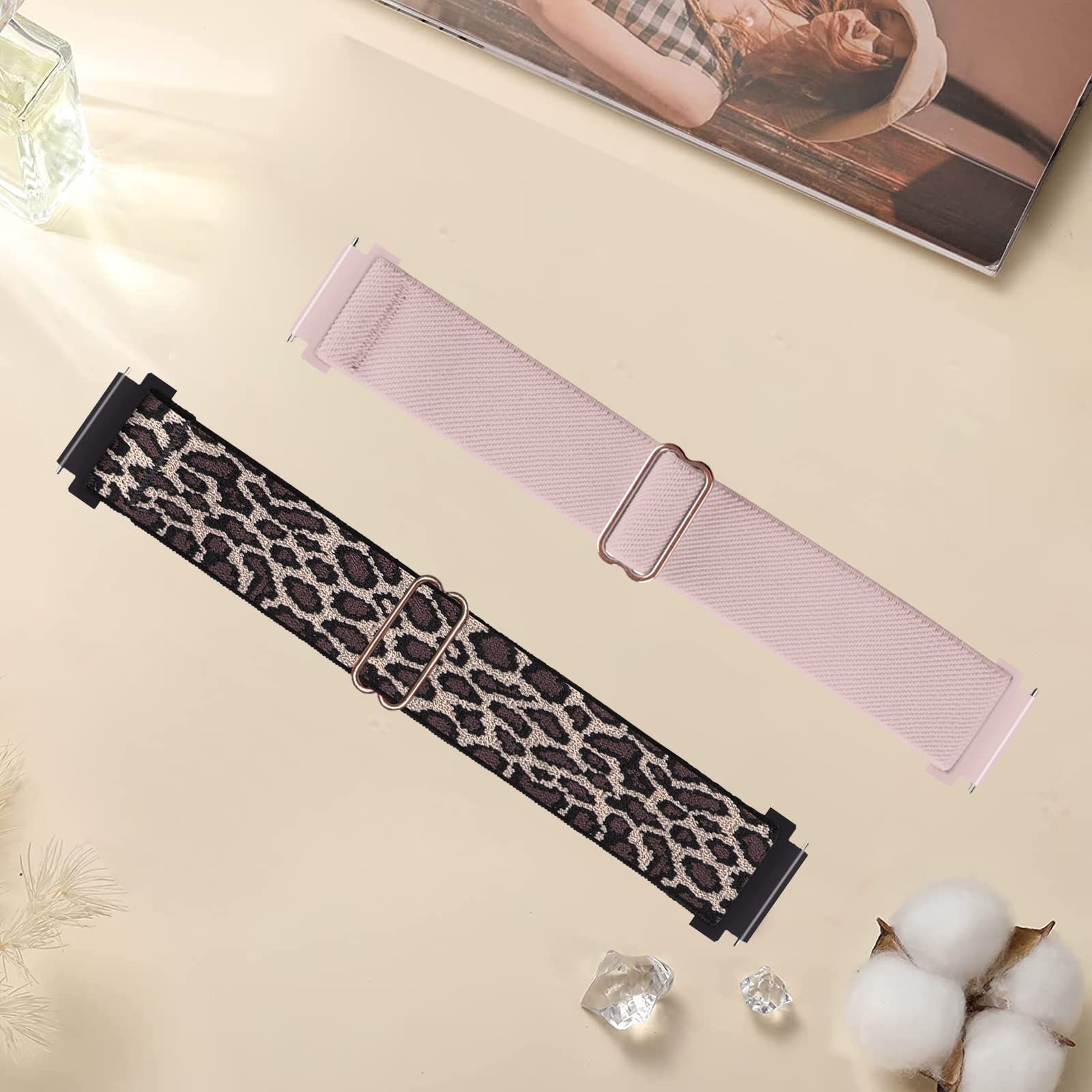 時計バンド クイックリリースベルト 柔らかくフィット軽く通気性も良くなナイロン伸縮性ウォッチバンド 無段階に調整なソロループゴムベルト スマートウォッチ交換ベルト 腕時計替えバンド 2本セット (22mm シルト+ヒョウ)