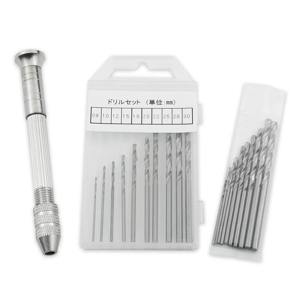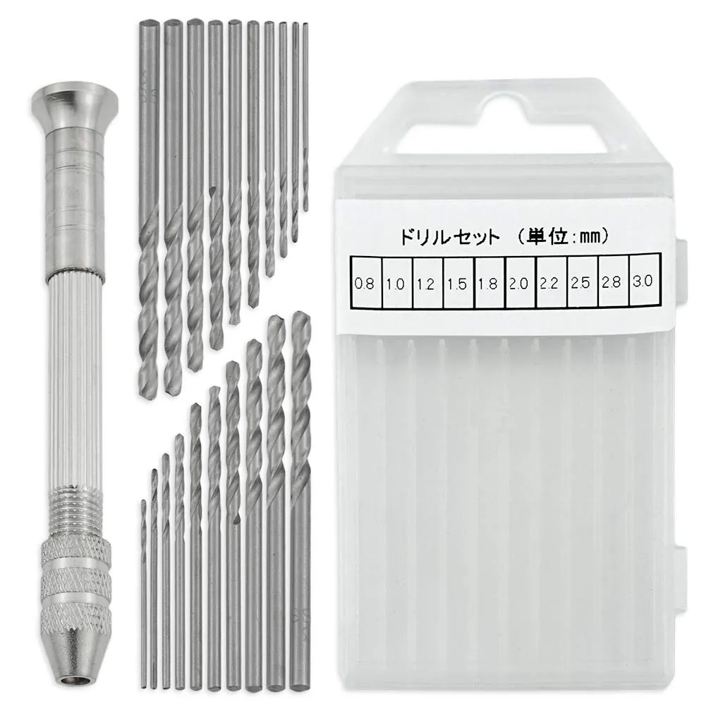 ピンバイス ハンドドリル クラフトツール 収納式 付け替え可能 ドリル 付き セット (ピンバイス1本+ドリル20本)