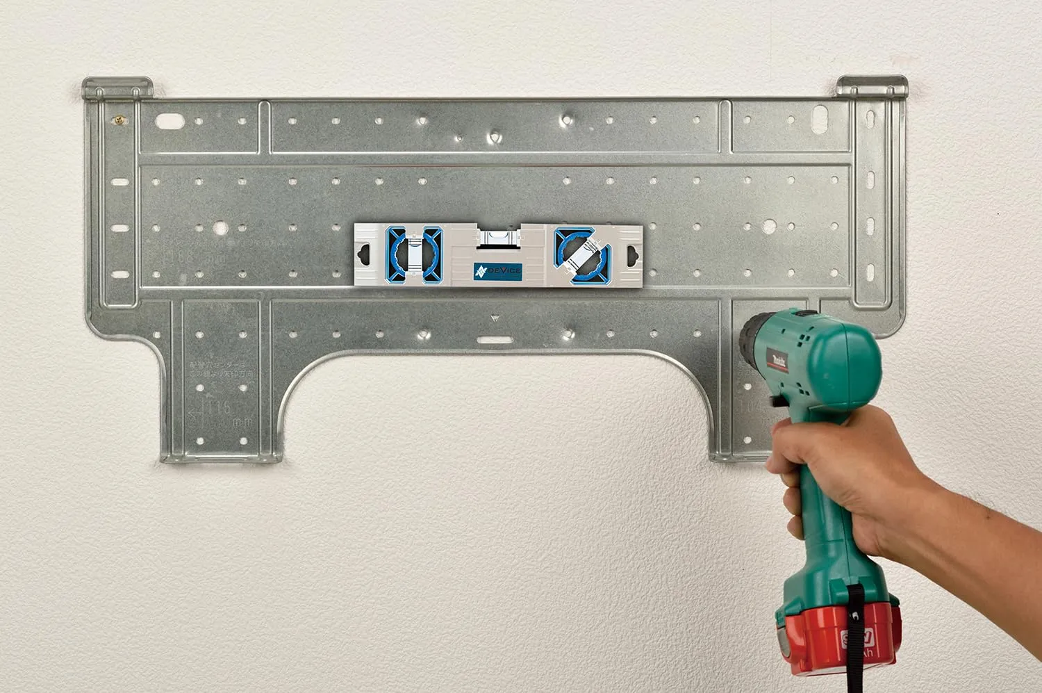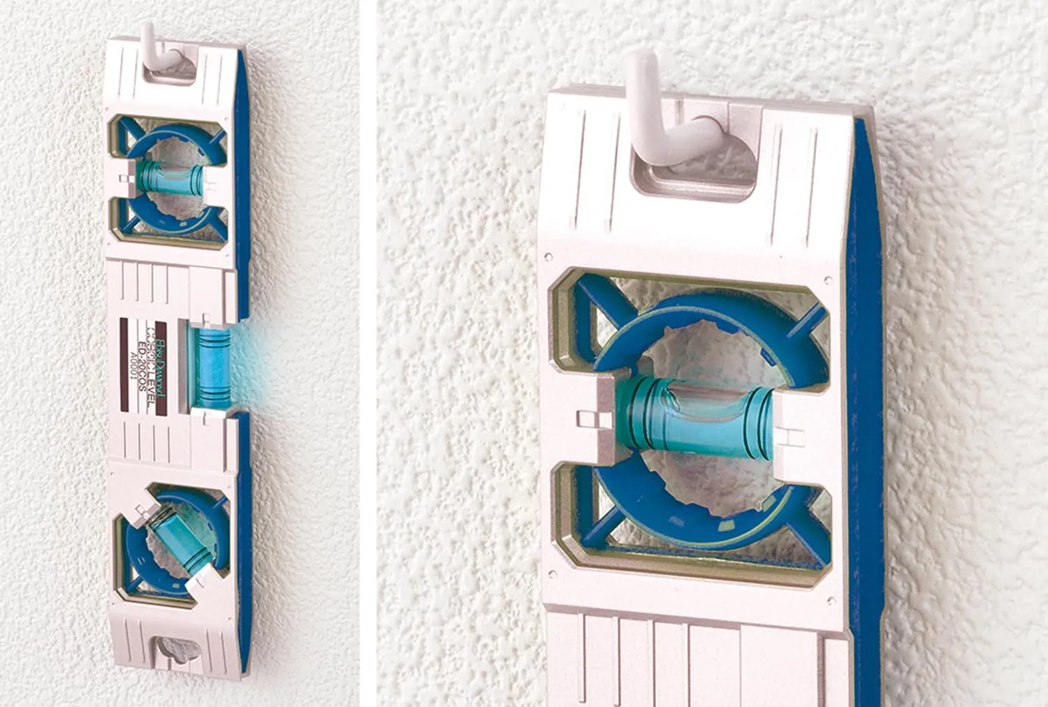 ・マグネット内蔵かつ、軽量ボディのため壁面取付金具の水平出しに便利