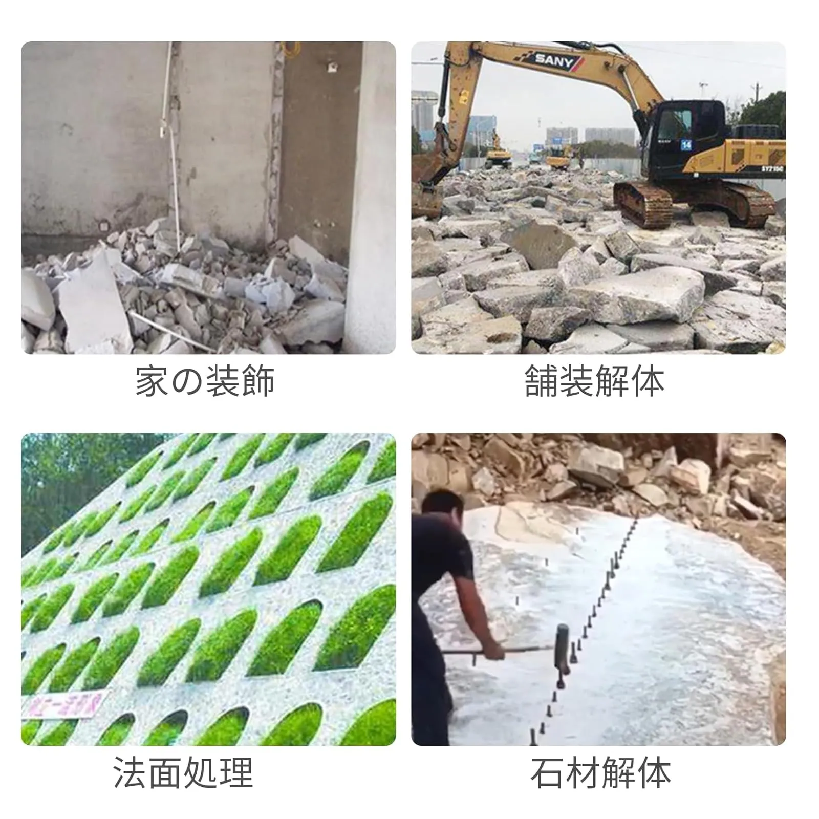 この石割り道具は5点セット、石の大きさに応じて使用、等距離設置使用、簡単に硬い石を突破することができます。
