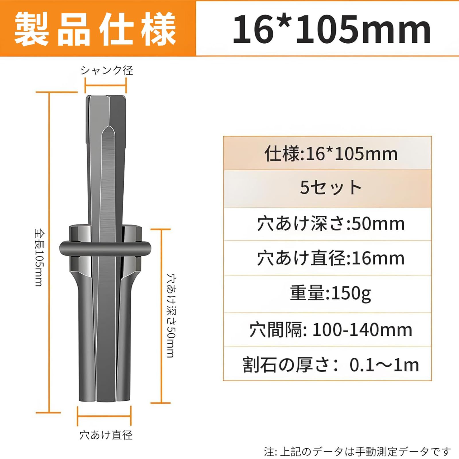 セリ矢 16 mm 5本セット 石割り道具 岩石分割機 ハンマードリル ストーンスプリッターくさび ストーンオープナー 石を素早く分割 ひび割れた石器 シールリング付き