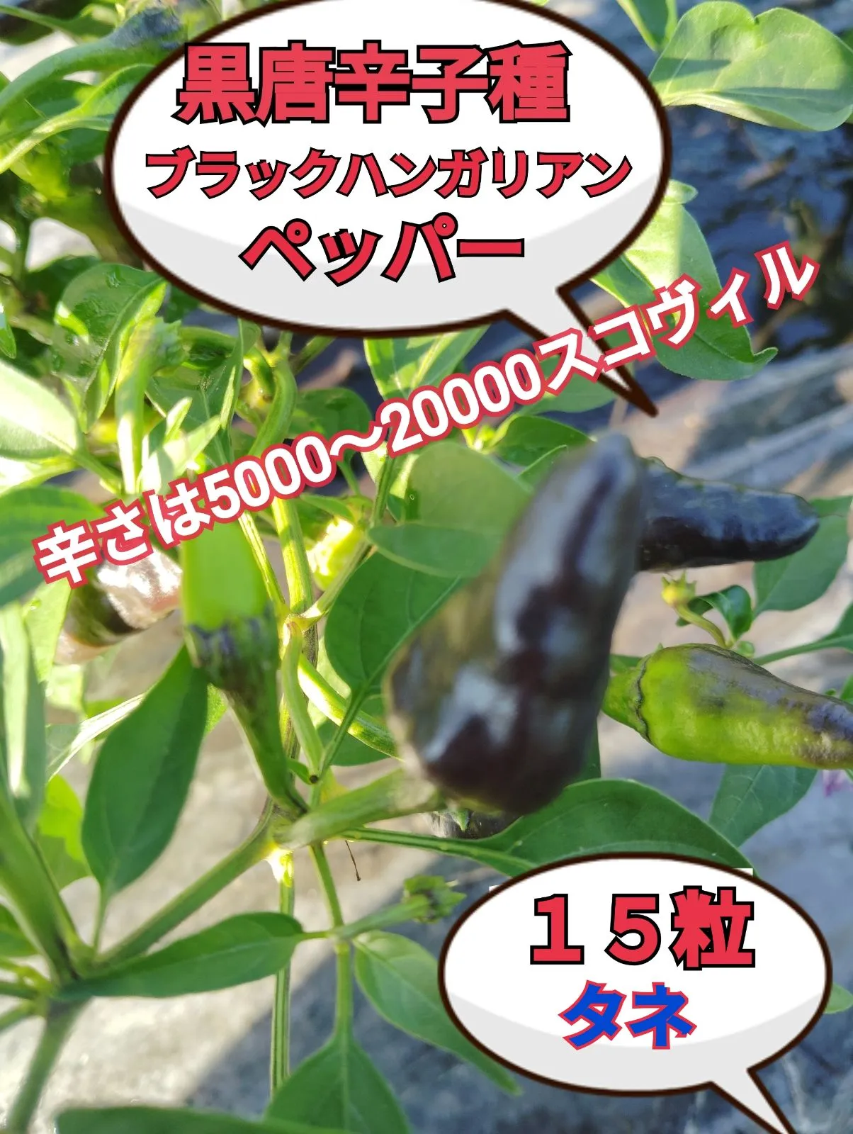 ブラックハンガリアンペッパー 種 15粒 ハンガリー エアルーム品種 固定種 果肉は黒 熟すと真っ赤になる 辛い唐辛子です 辛さは未熟の黒い状態で控えめ 完熟して赤くなるとハラペーニョ位の辛さになります ♦5000〜20000 スコヴィル 2025年度 自家採種した種 珍しい種だとおもいます 唐辛子種は発芽率は良いとおもいますが保証はできませんが ♦生のまま和切りにしてサラダに加えたり ピーマンのように炒め物に入れたり 煮込み料理にも入れたりできます ♦熟した赤い色 になると 採取した時の唐辛子で 辛さは 20000スコヴィルなります 辛さで 色々料理も楽しめます 農薬不使用 化学肥料不使用でこだわって作ってます いかがですか?