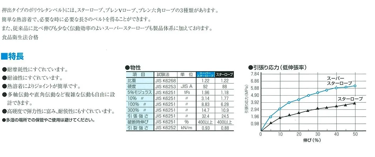 三ツ星ベルト ポリウレタン丸ベルト スターロープ 断面径5mm×長さ2M