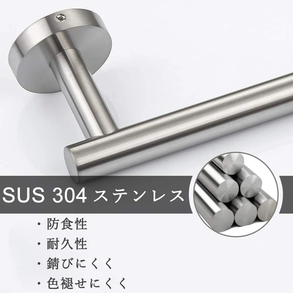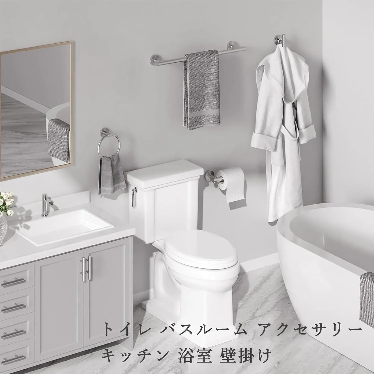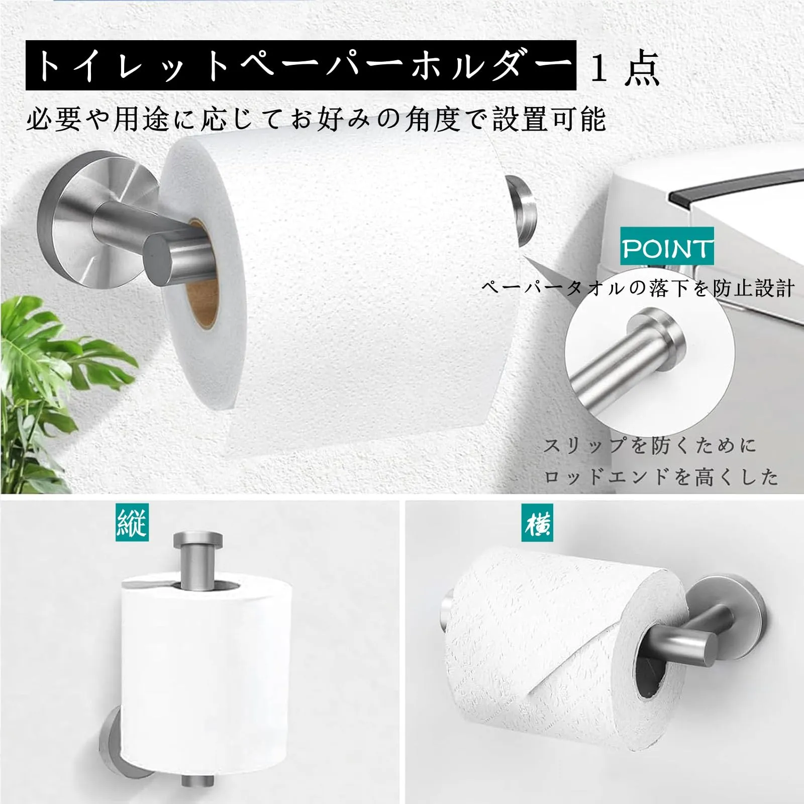5点セット おしゃれ ステンレス トイレットペーパーホルダー タオルバー 壁掛けフック 壁掛け タオル掛け タオルフック ビス止め キッチン 洗面所 トイレ 浴室 バスルームアクセサリー