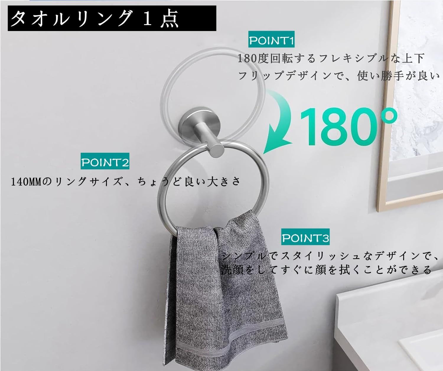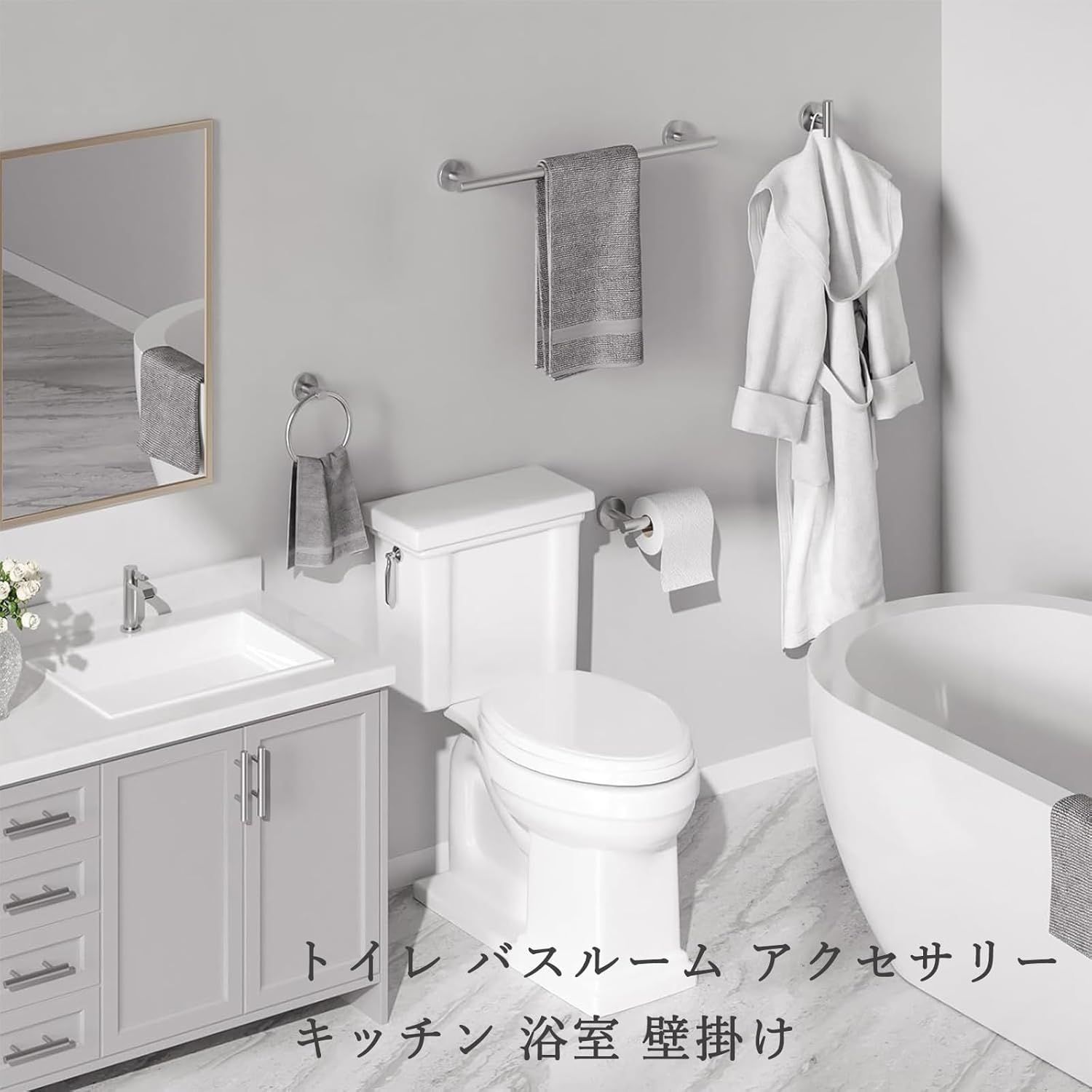 【パッケージ内容】タオルバー×1 トイレットペーパーホルダー×1、タオルハンガーリング×1、コートフック×1