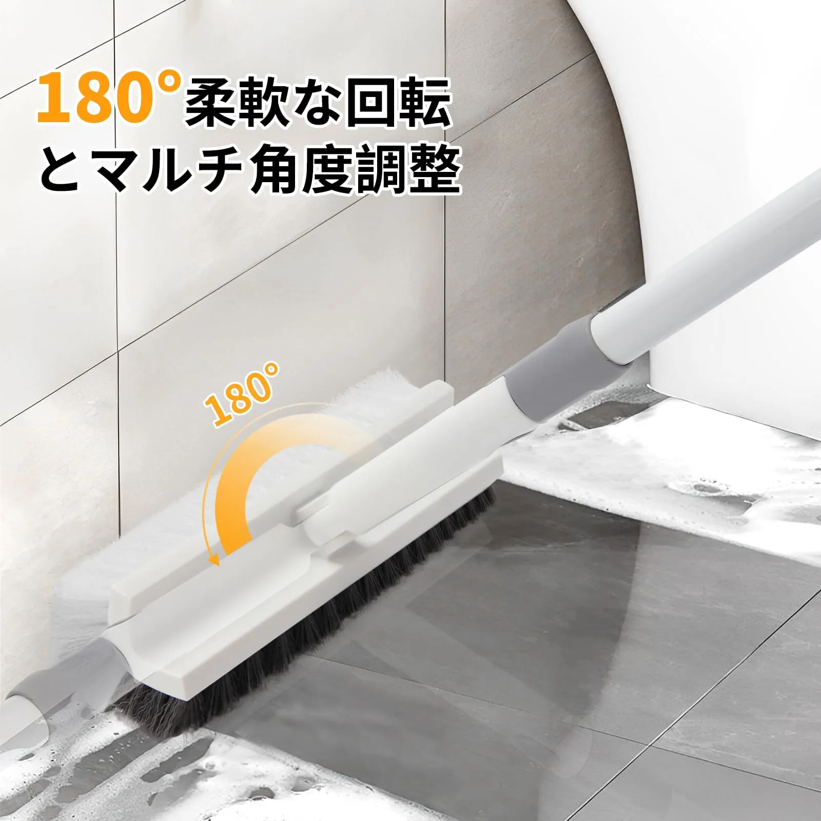 デッキブラシ 隙間掃除ブラシ 掃除用ブラシ 3段ポールの長さは52cm?120cmに調節可能で、隙間/浴室/床/バルコニーの掃除に適しています (V字型)