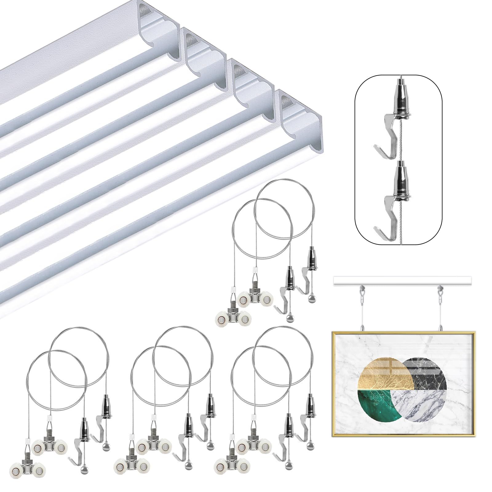 ピクチャーレール Twours U型ピクチャーレールセット4m ホワイト天井用 レール ワイヤーロープ フック セット展示用 額縁ディスプレイスタンド 絵画 写真 ポスター