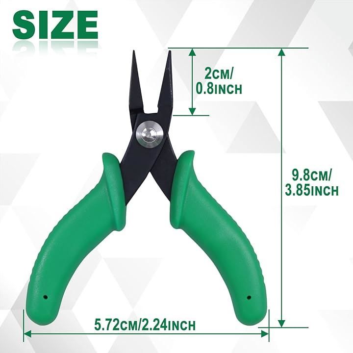 サイズ:細いニードルノーズプライヤーの長さは9.8cm/3.85インチ、幅は5.72cm/2.24インチです。