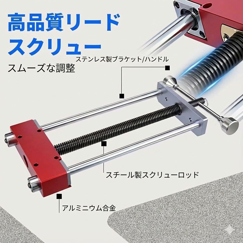 スムーズな動き 安価なバイスに見られる「ガリガリ感」がありません。精密なリードスクリューにより、指一本で回せるほどスムーズに開閉調整が可能です。