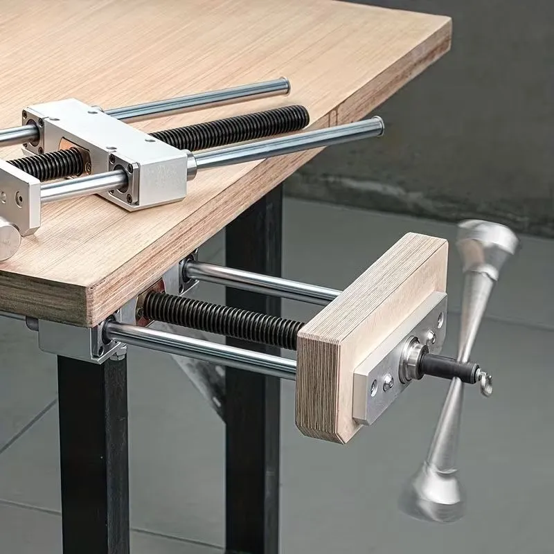 鋳鉄製の重すぎるバイスとは違い、アルミニウム合金とステンレスを使用した「軽量」かつ「高剛性」なモデルです。 自作の木製作業台への埋め込みや取り付けに最適で、フロントバイス・テールバイスどちらにも使用できます。