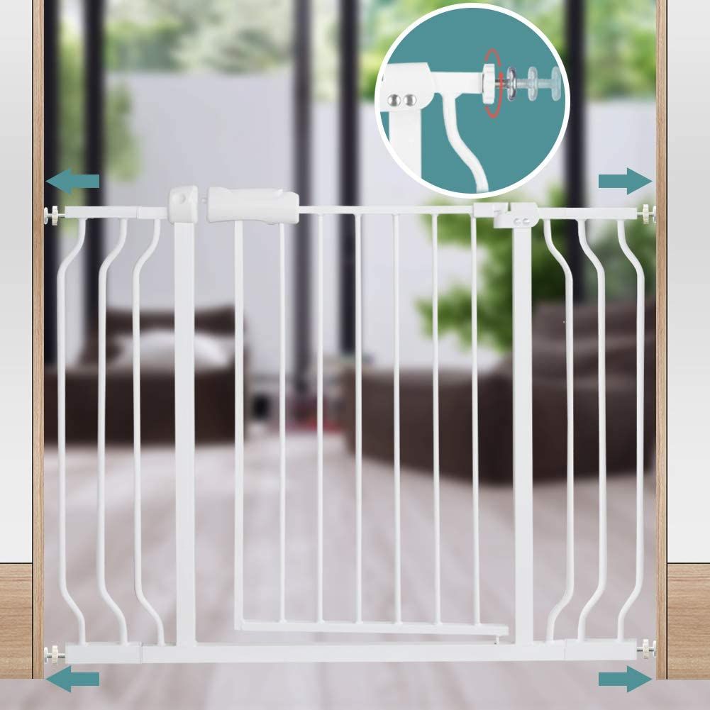 Mornyray ベビーゲート ベビーフェンス 突っ張り式 開閉式 オートクローズ機能付き 拡張付き 取付簡単 ペットゲート セーフティー 安全ゲート ペット柵 育児用品 ホワイト