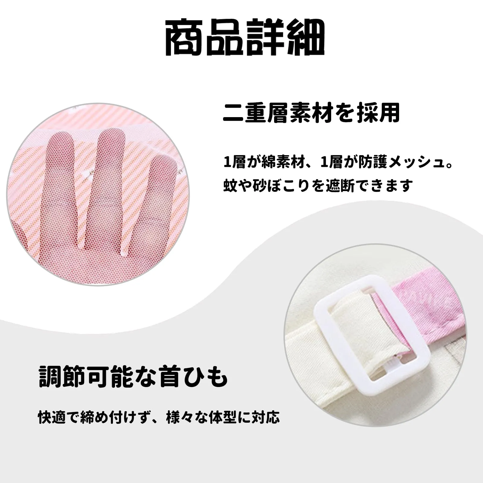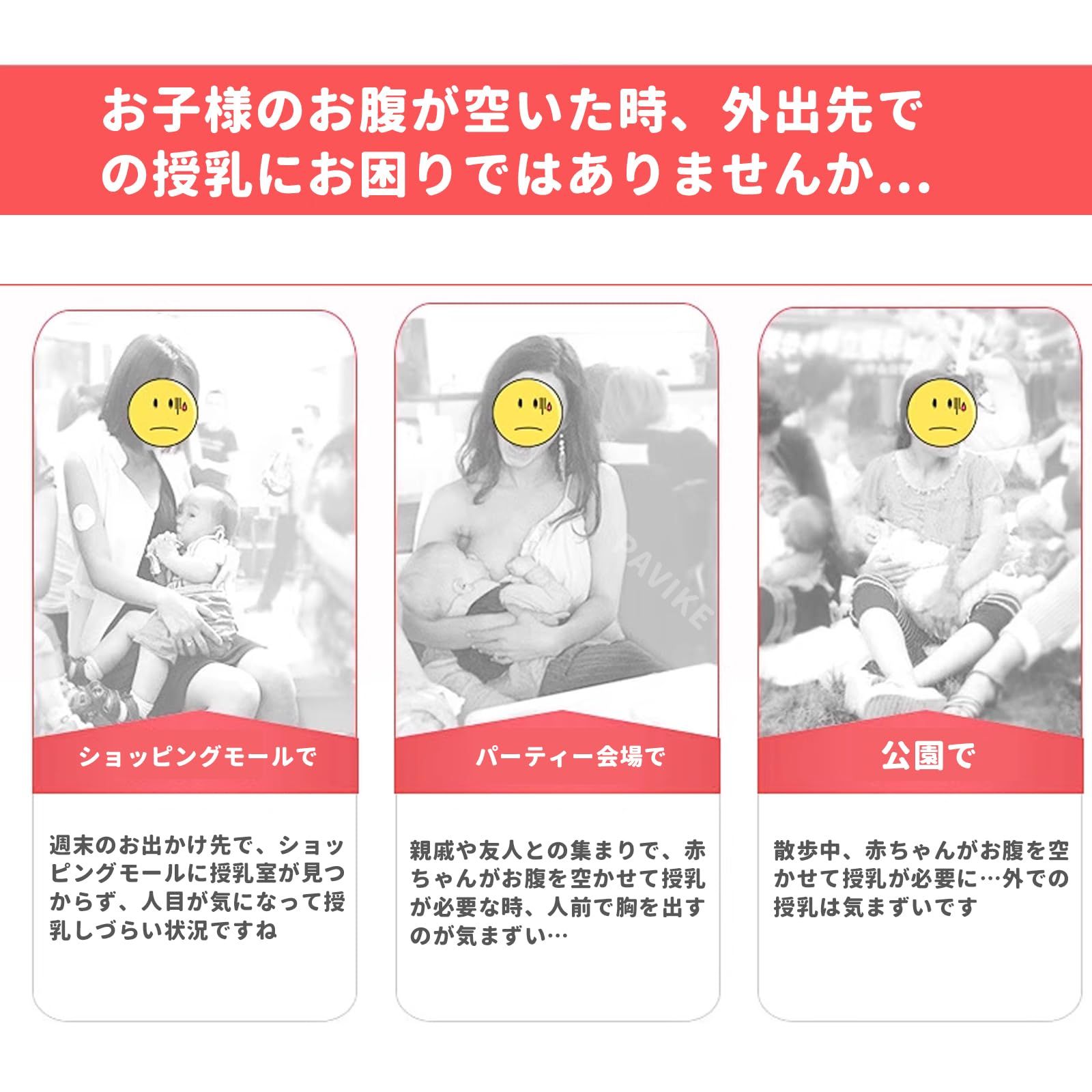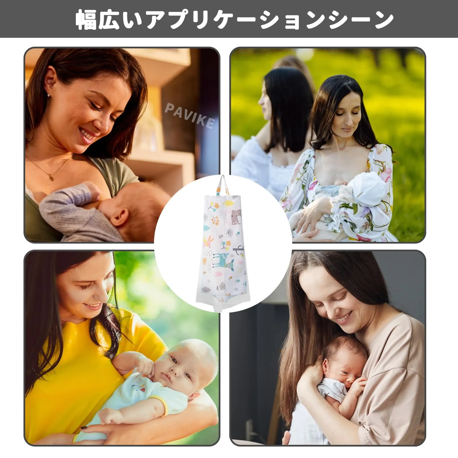 【全面的に遮蔽し、プライバシーを守る】授乳ケープとして、優れた遮蔽効果を備えています。エプロン、遮蔽用ストラップ、またはおしゃべりカバーとしても使用できる可能性があり、授乳時の露出を効果的に防ぎ、ママが公共の場でも安心して授乳をすることができるようにします。広めのデザインで身体を全面的に覆うことができ、ママと赤ちゃんのために比較的プライベートな授乳空間を作り出すことができます。