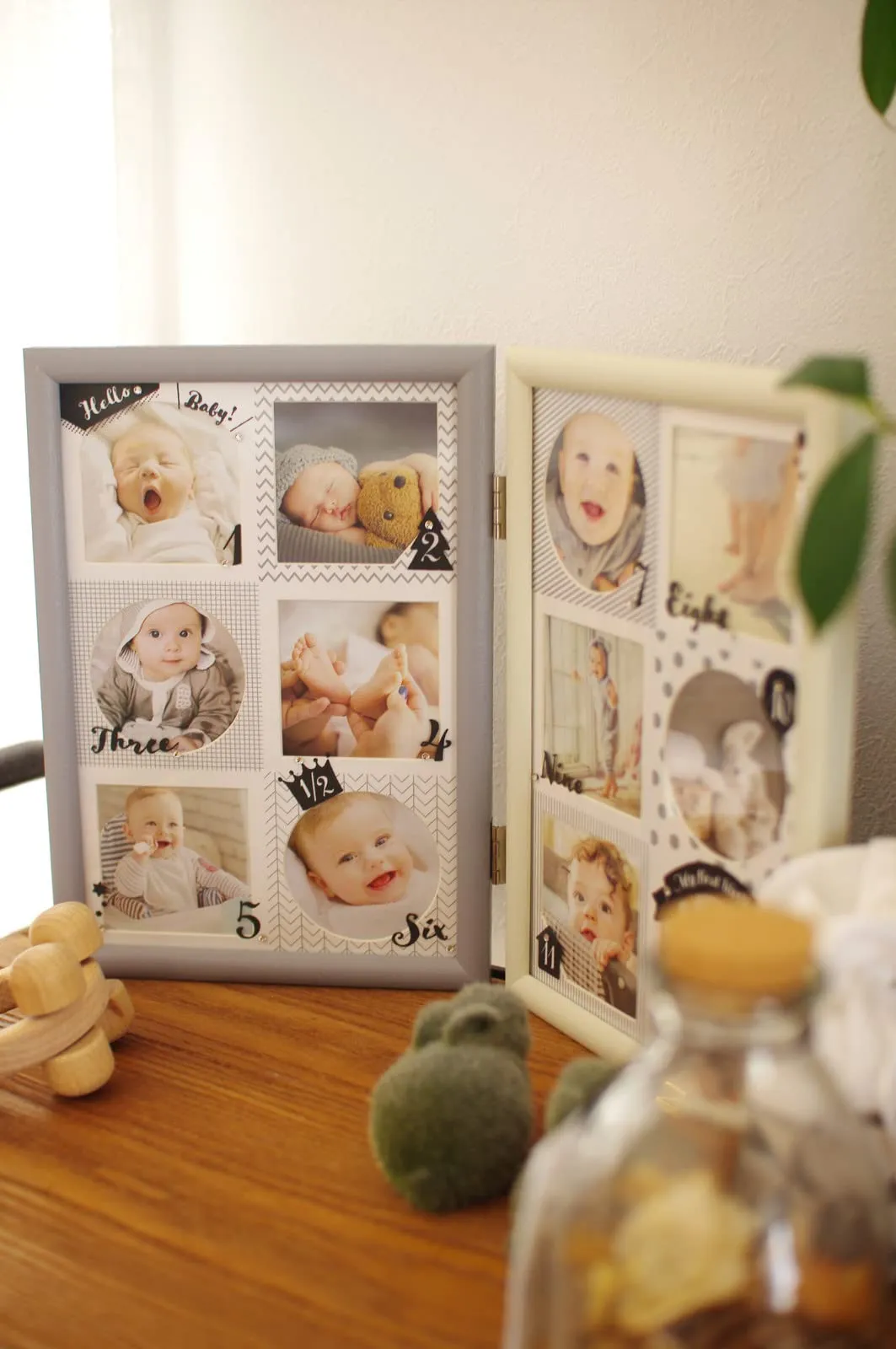【大人可愛い北欧デザインのベビーフォトフレーム】モノトーンで優しいシックな感じのベビーフレーム、世界に一つの特別なものに仕上がります。