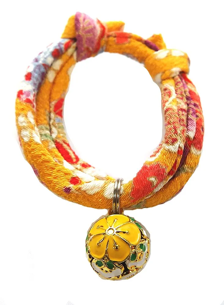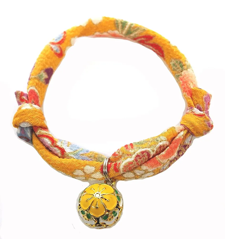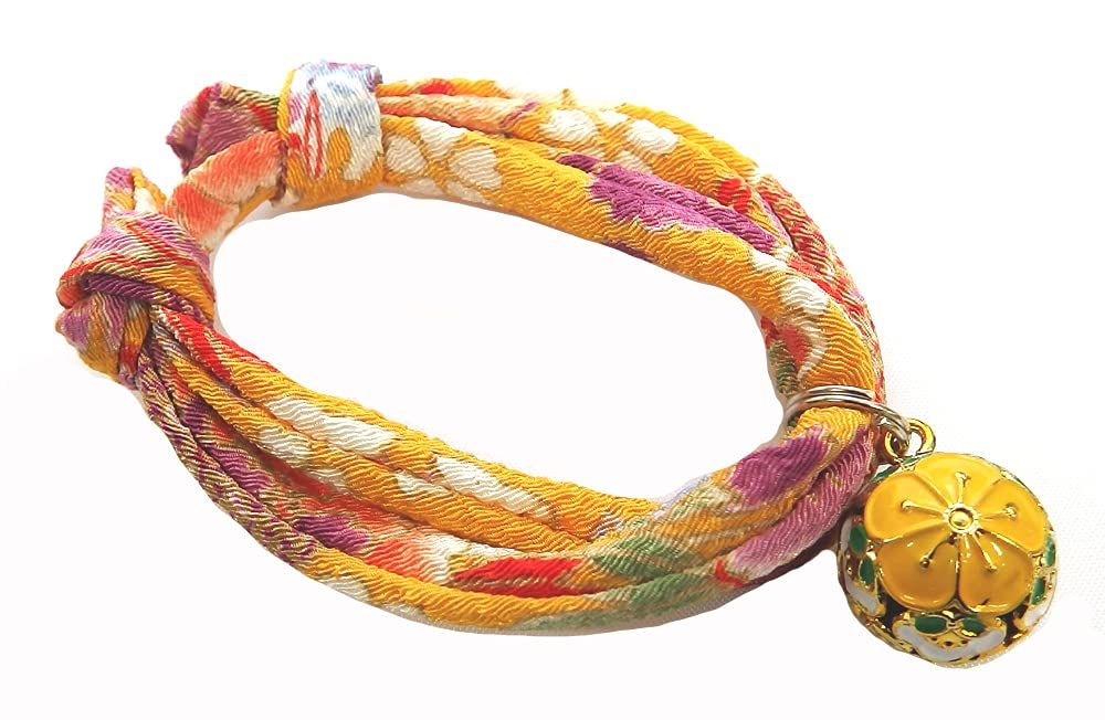 【首輪処】猫用首輪 猫鈴 チャーム (菫黄 梅黄) アクセサリー チョーカー やわらかい生地で首や被毛に負担がかからない(サイズ調整可)浅草 京都 ちりめん 和風モダン おしゃれ かわいい (菫黄梅黄)