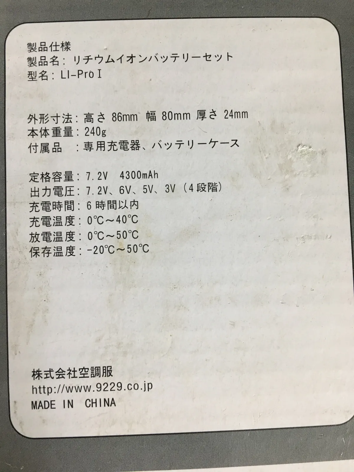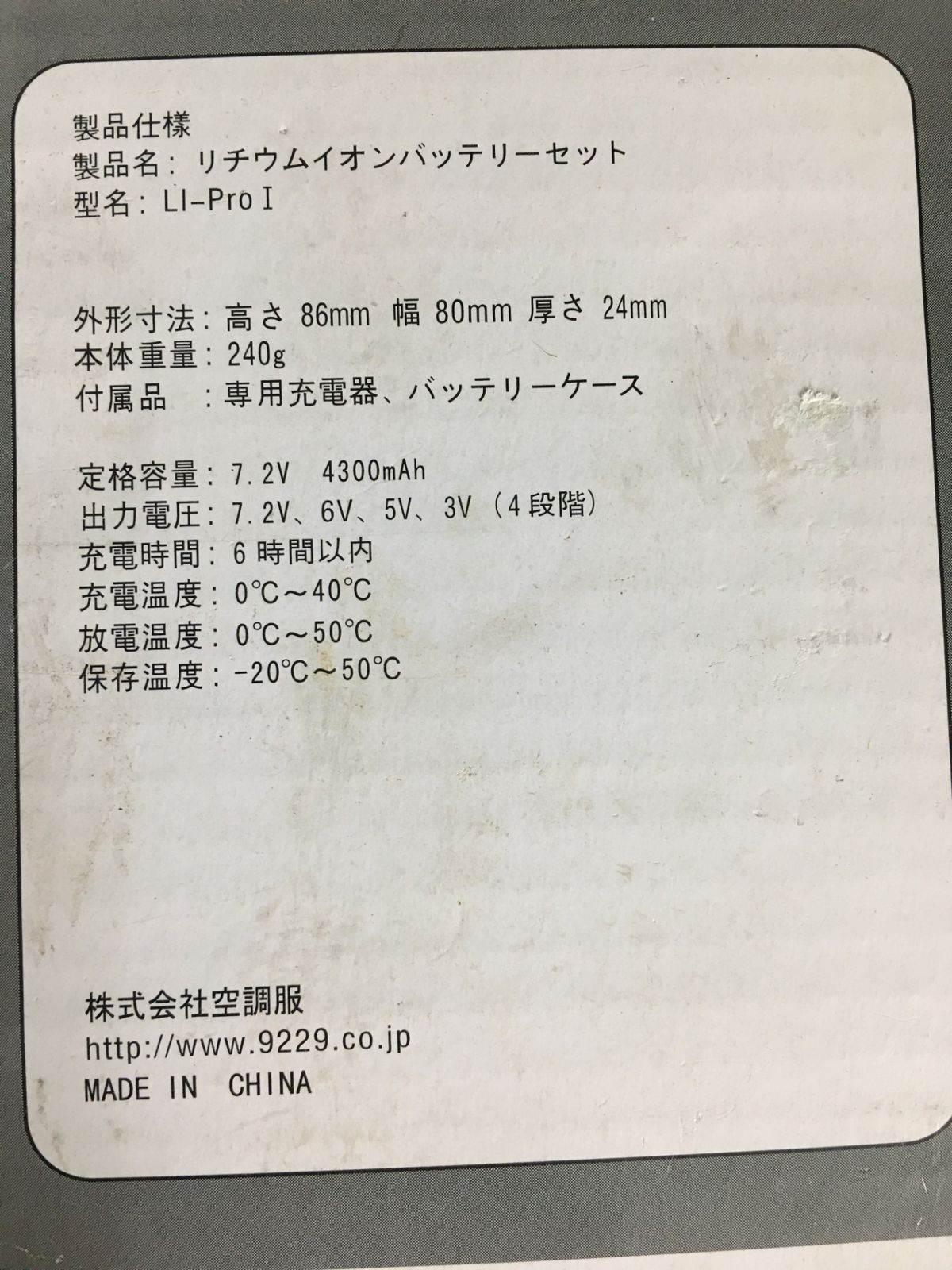 ■商品:★空調服用 リチウムイオンバッテリー 充電器付き LI-Pro1