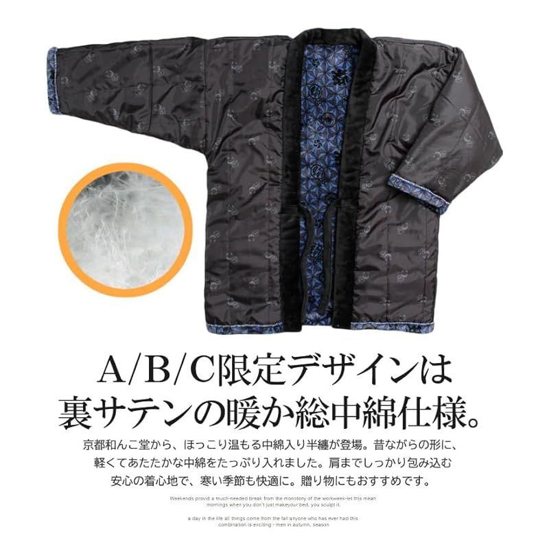 唐草模様のあったか裏ボア入り半纏(はんてん)です。
