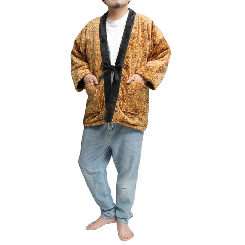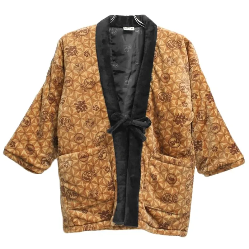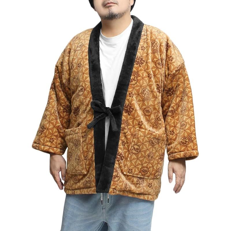 商品名:★注目商品★わんこ堂 はんてん メンズ 暖かい ボア 唐草 プリント 柴犬 京都発祥 ゆるキャラ 和んこ堂 ちゃんちゃんこ LL キャメルC