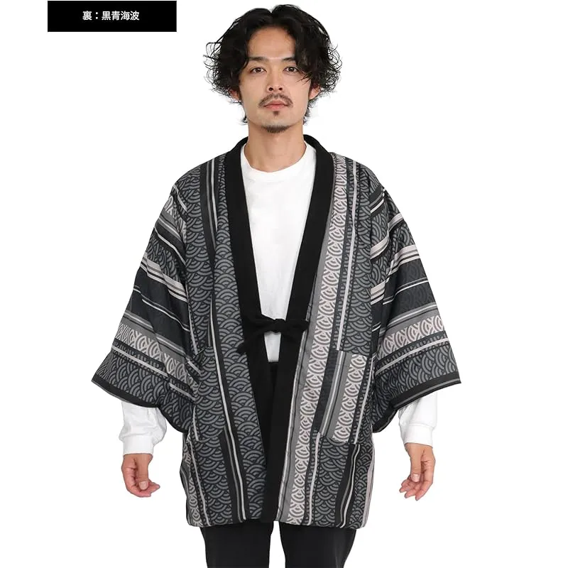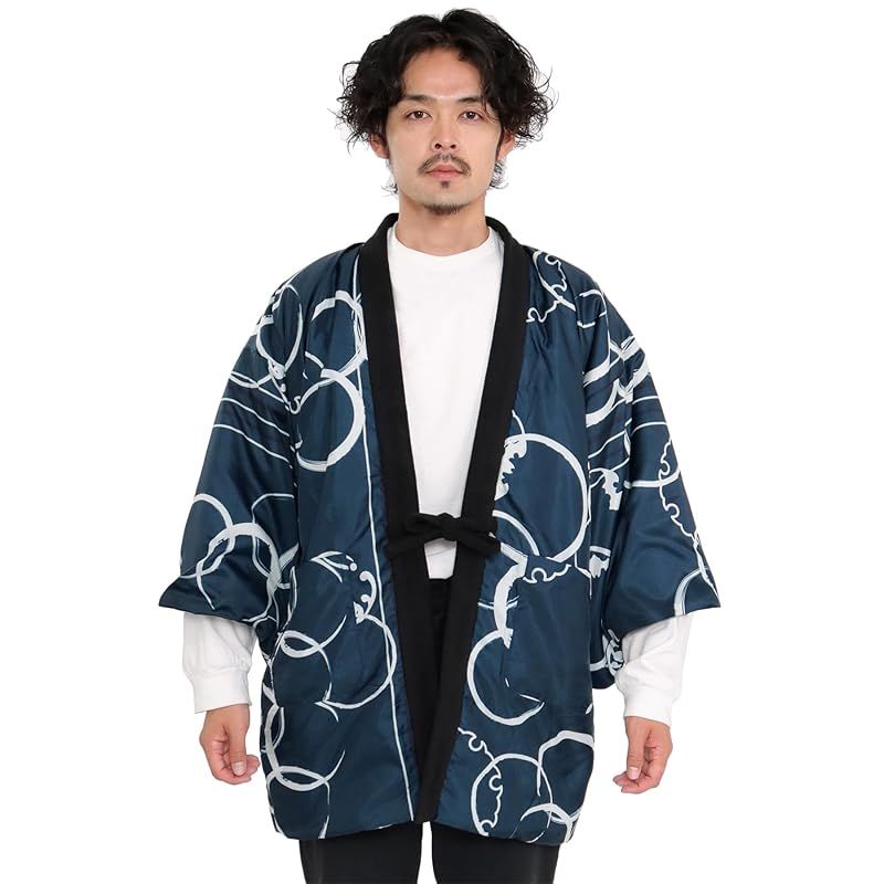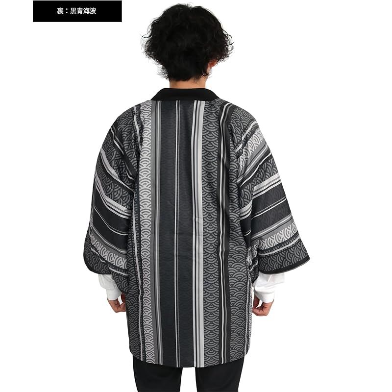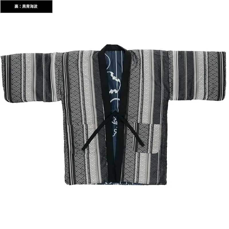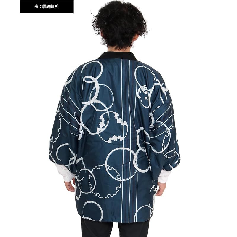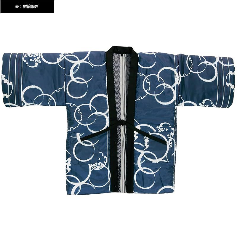 商品名:★注目商品★[KYOETSU] [キョウエツ] はんてん メンズ 冬 綿入れ 半纏 半天 暖かい リバーシブル (紺輪繋ぎ-黒青海波, L)