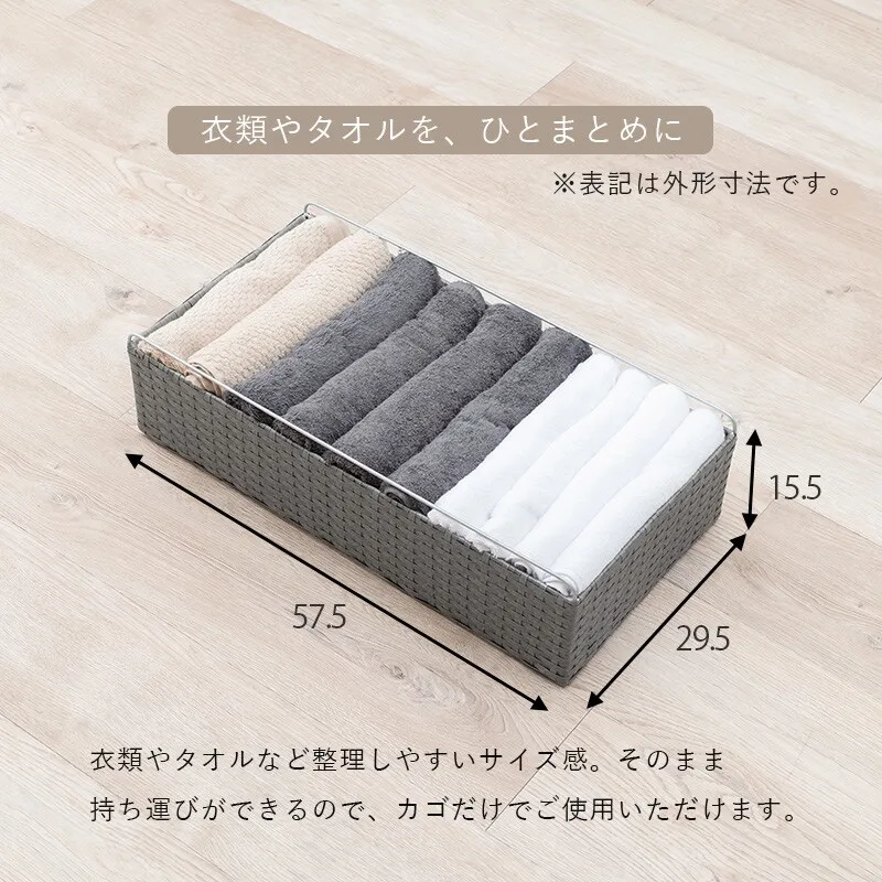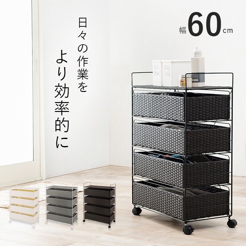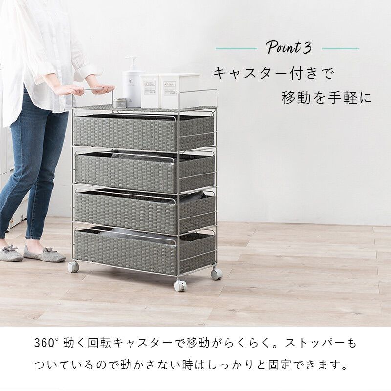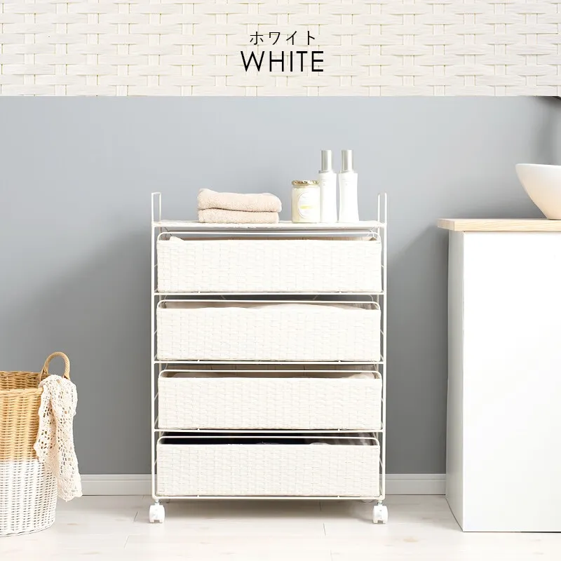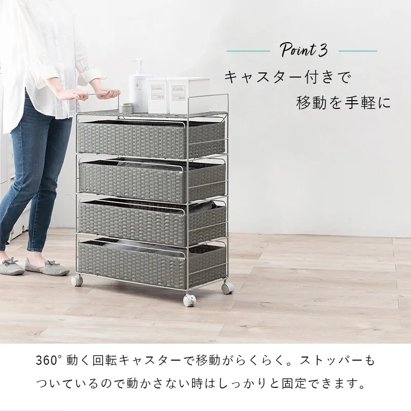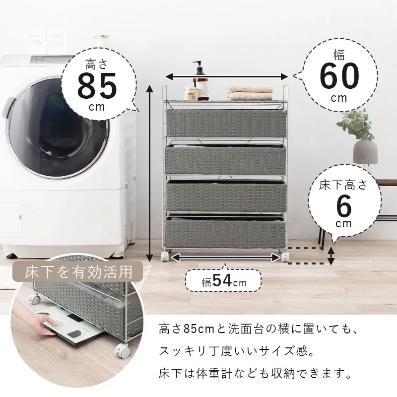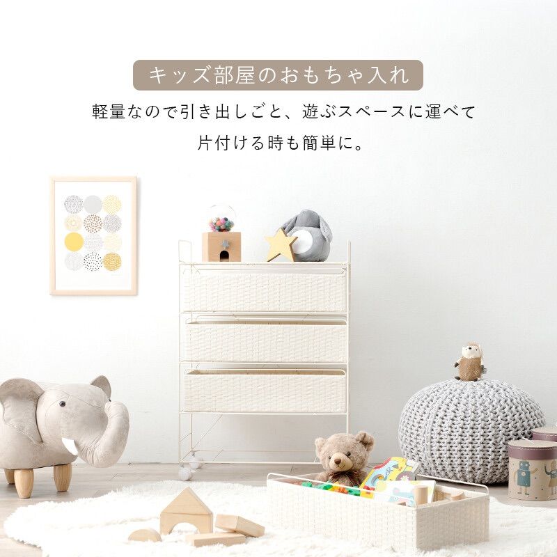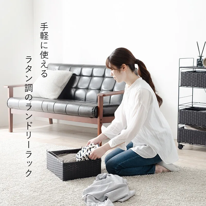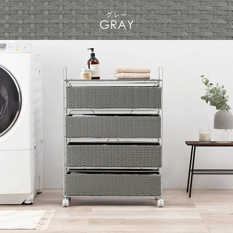 取っ手を持って引出しを運べるので洗濯物の収納や片付けが効率的に。樹脂製なのでお手入れしやすいランドリー収納です。 サイズ・容量