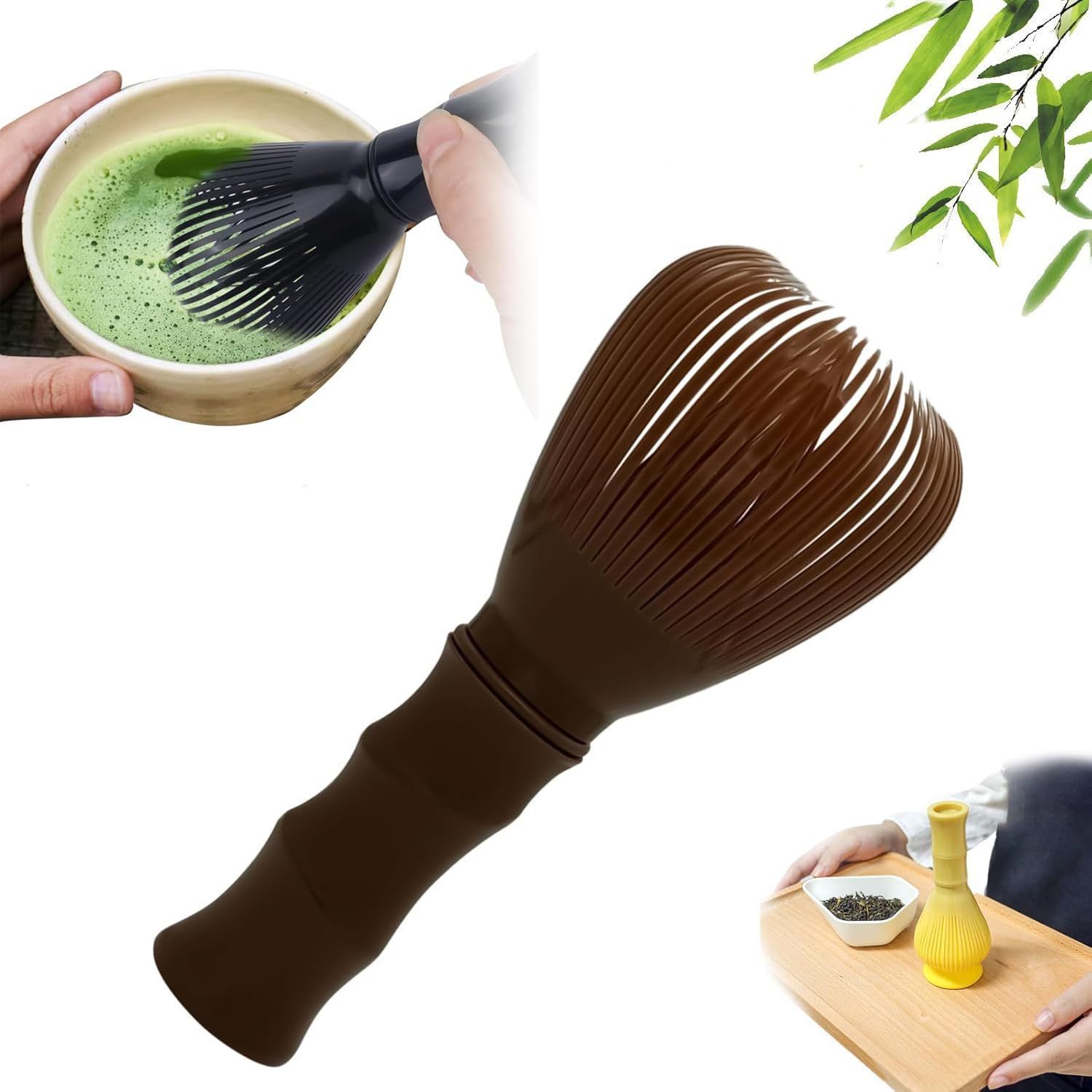 茶筅 茶せん 抹茶ブレンダー 樹脂製 竹型 速乾性 カビ生えない バリなし クリーン簡単 再利用可能 抹茶ブラシ 茶道 バブル 抹茶ブラシ泡立て器 (褐色)