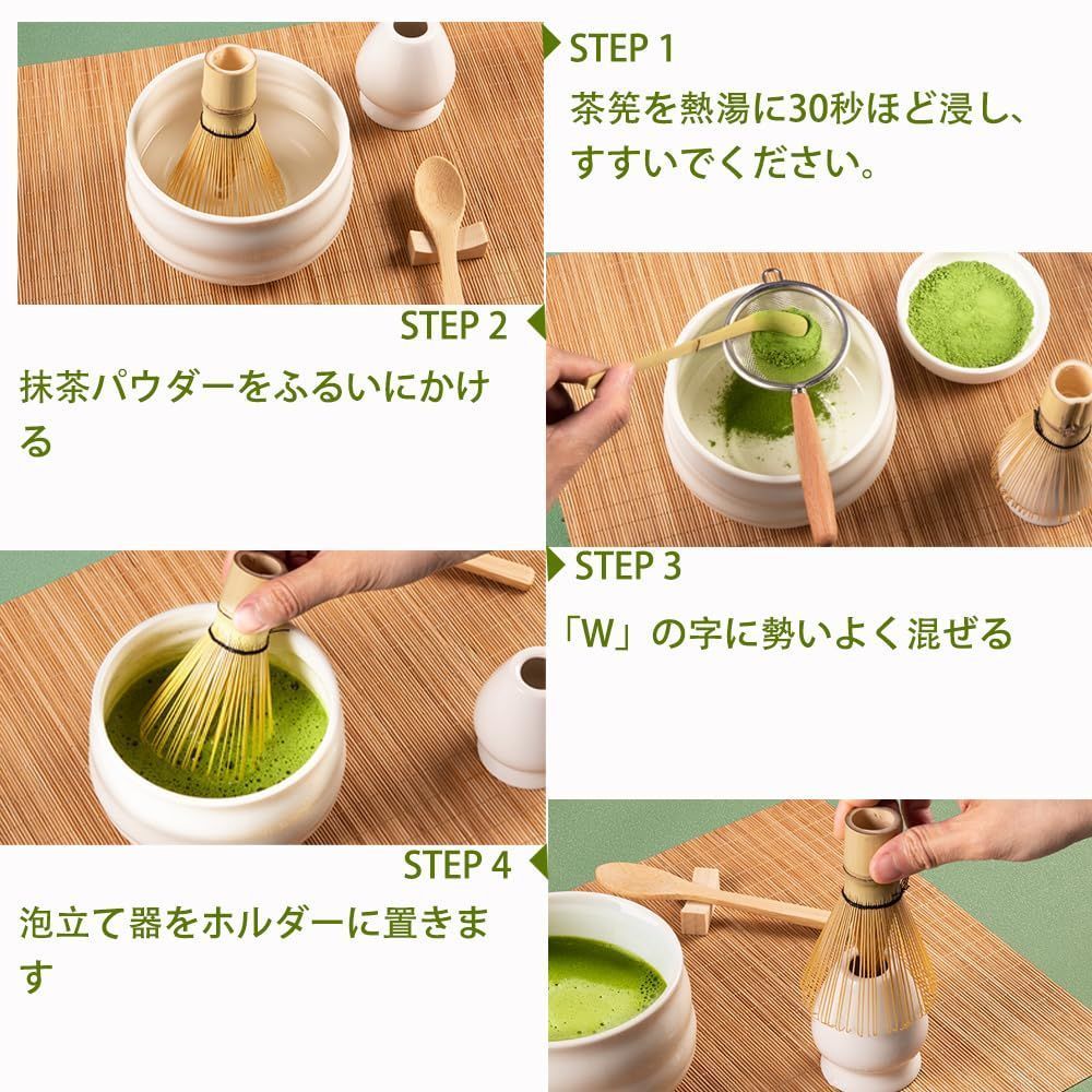 【お手入れ簡単】表面が滑らかなのでお手入れが簡単で、抹茶の残りも心配ありません。伝統的な竹製の茶筅と比べて、プラスチック製の茶筅は吸水性が低く、変形しにくく、お手入れが簡単で、細菌の増殖の問題を回避できます。水で洗った後、乾拭きすれば綺麗に保存できます。