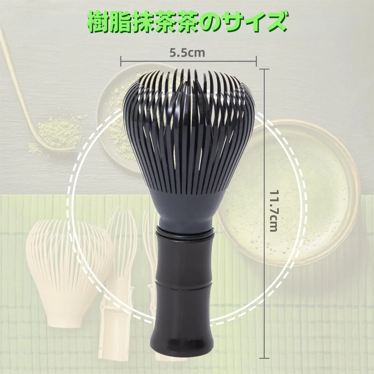 【プレゼント】茶筅の長さ、幅、高さは約6*6*11cm、柄の幅は約3cm、色は黒です。持ち手は竹のような形をしており、お茶を淹れる過程が面白くなります。茶道が好きな友人への贈り物に最適です。