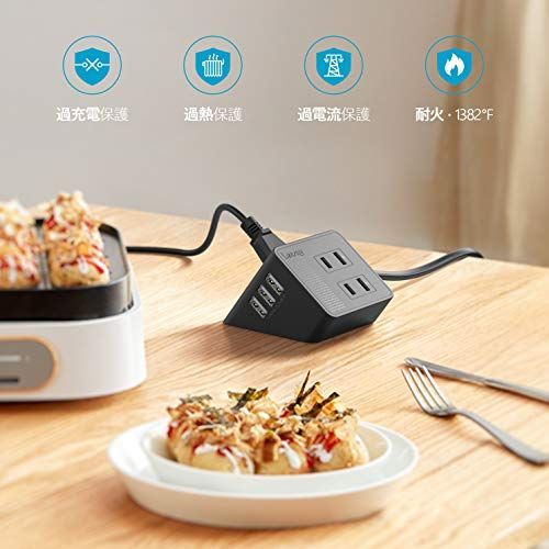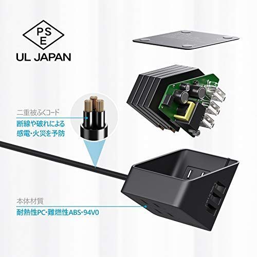 【多重安全保護】この電源タップ usbは通電ランプを内蔵しているので消し忘れを防止できます。過熱、過電流、過負荷、過充電からお使いの家電を守り、安全で頼りになれるテーブルタップです。耐熱性に優れた樹脂二重被ふくコードを採用していますので、長期間安心してお使いいただけます。