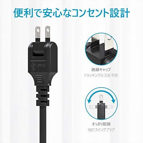 【使用者の利便性に配慮】プラグが180*折りたたみ可能で、狭い場所でも使用できます。1.5メートルありの延長コードは、コンセントから離れた場所でも充電できるし、コードの長さも扱いやすいです。この電源タップは小型でコンパクト、携帯が便利で、出張や旅行などにも最適です。