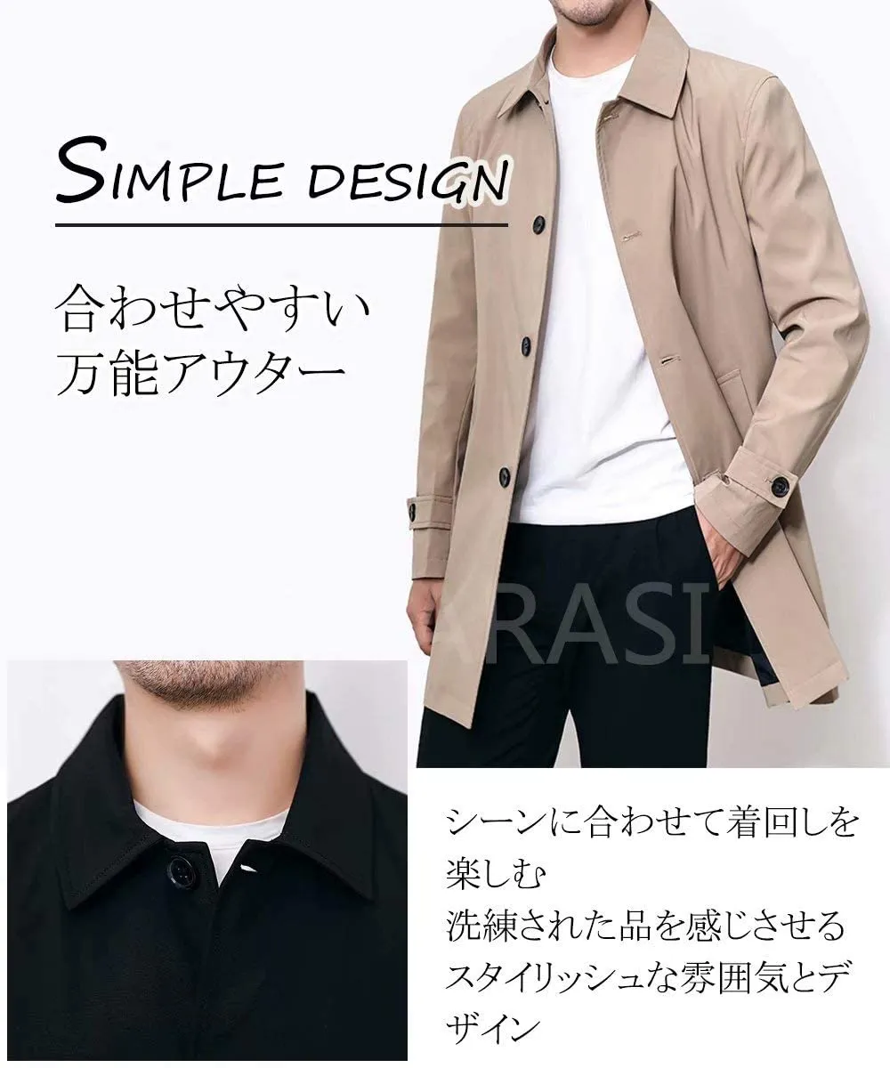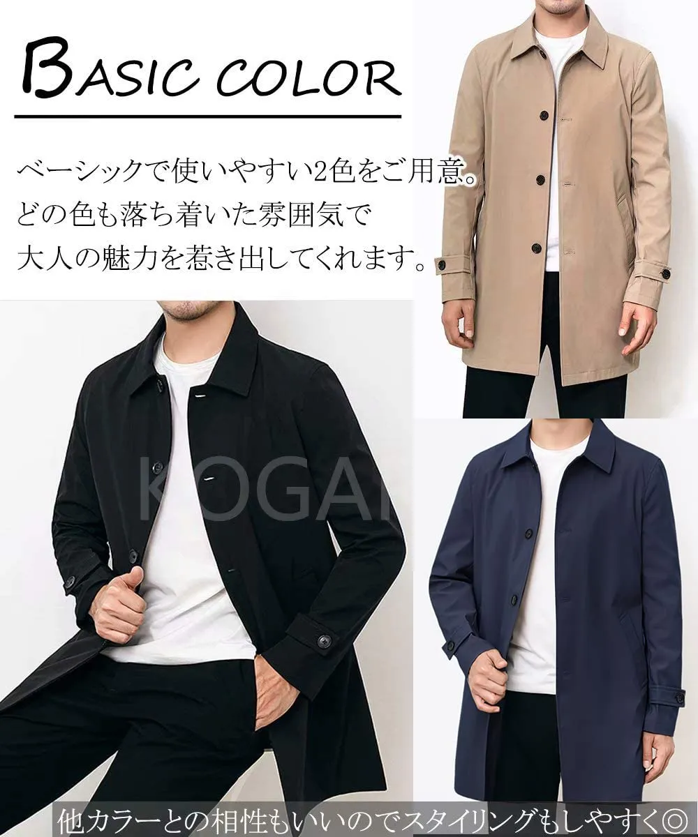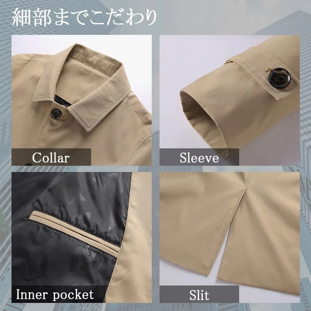 [KOGARASI] トレンチコート メンズ ジャケット スプリングコート テーラード ジャケット 防風 無地 ビジネス カジュアル 兼用 折り襟 秋 冬 春 おしゃれ 薄手
