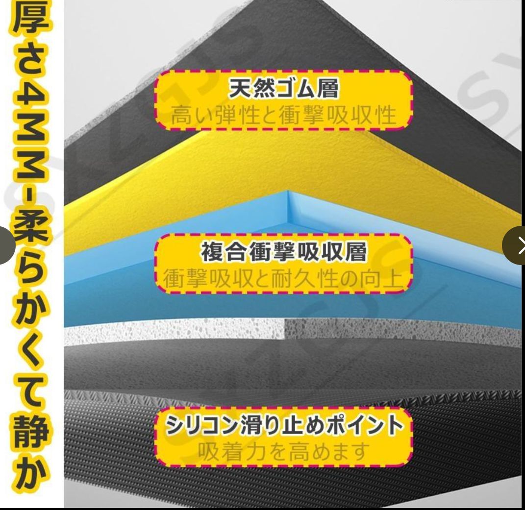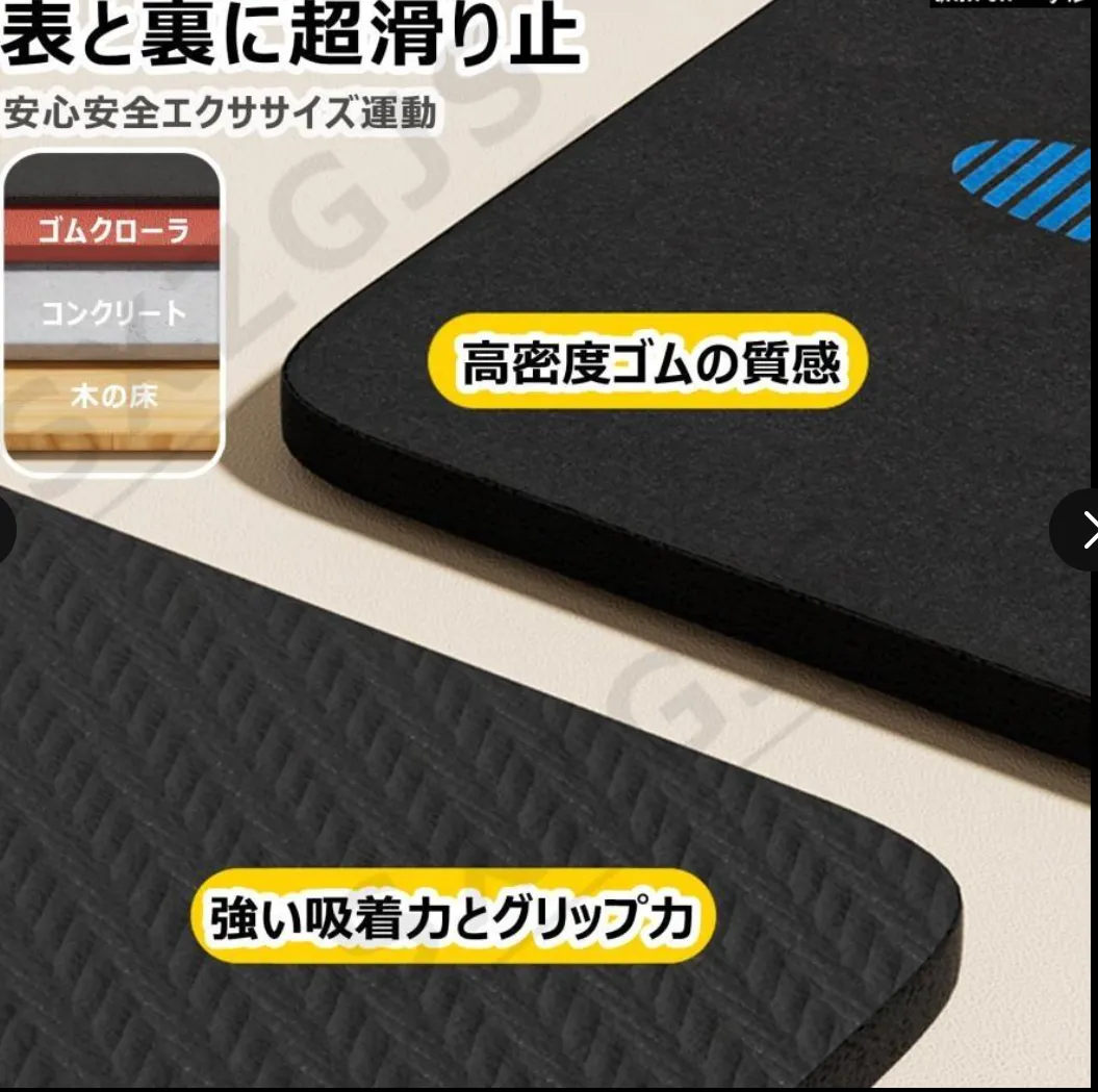 【ご注意】木、タイル、大理石などの硬い床に推奨します。 また、マットは新品ですので、多少のゴム臭がある場合がございます。 これは正常です。 風通しの良い場所に置いてください。