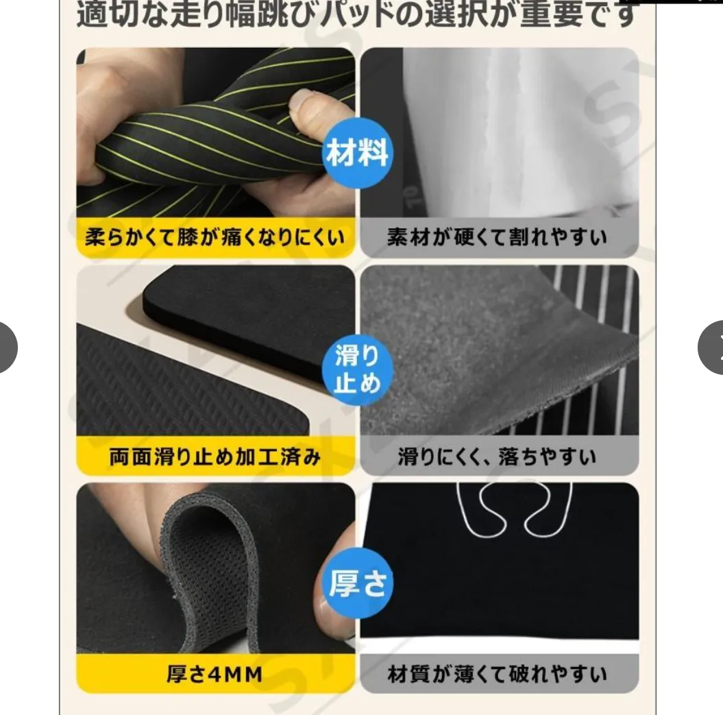 【両面滑り止め】表裏両面に高密度の質感があり、トラクションとグリップ力を発揮します。 テストパッドが床上で滑ったり、手足が落ちたりするのを効果的に防ぎます。