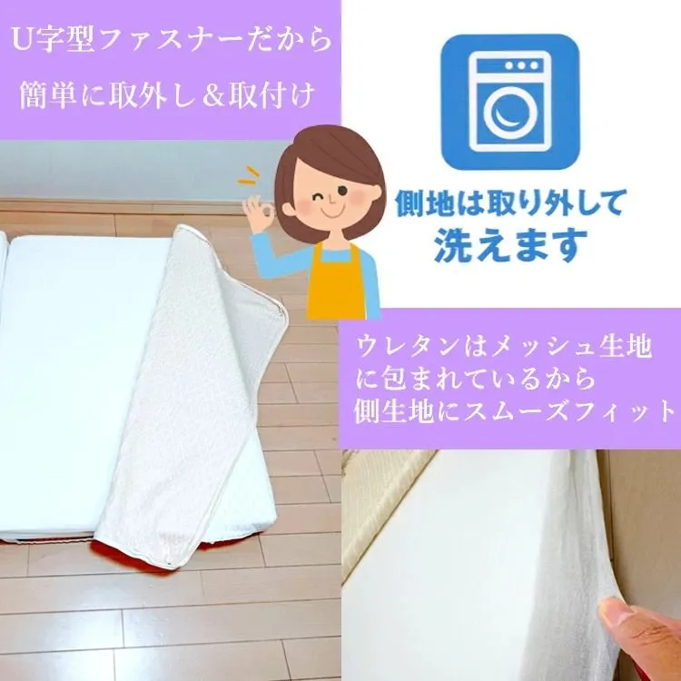 ・側地はウレタンを劣化から守るためにありますので、必ず側地の上にシーツを掛けてご使用ください。頻繁な側地の取り外しはウレタンや側地の劣化に繋がります。