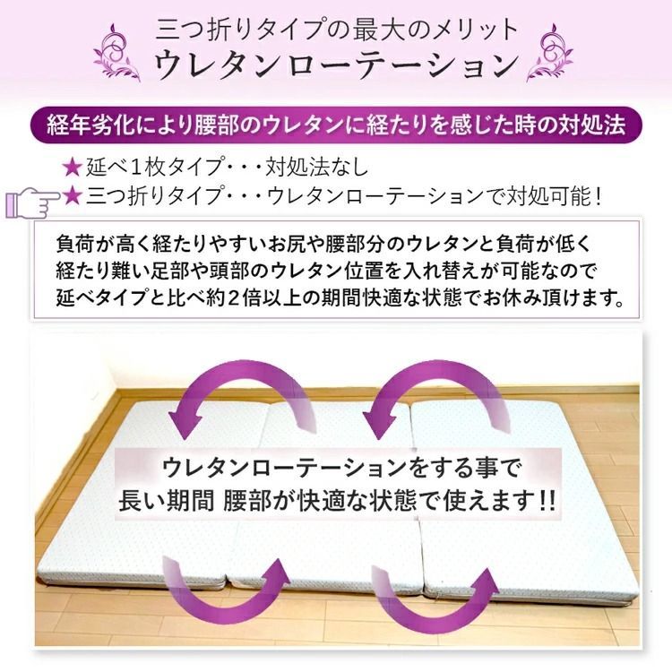 ベッドフレームの上や、敷布団としてフローリングや畳の上に敷いてお使いいただけます。
