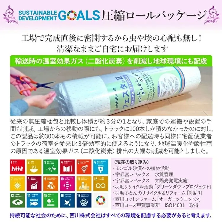 ・開封後、本来の厚みに回復するまでは、上に重いものを載せず広げた状態にしておくことをお勧めします。