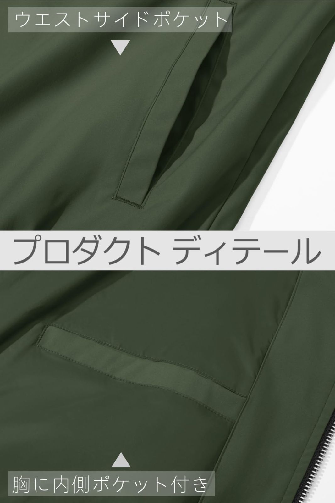 【デザイン】サイド×2、インナー×1、日常の収納ポケットがあり、便利な収納スペースを備え、必要なアイテムをスマートに持ち運べます。裾・袖口・襟に伸縮性があり、動きやすく快適な着き心地です。