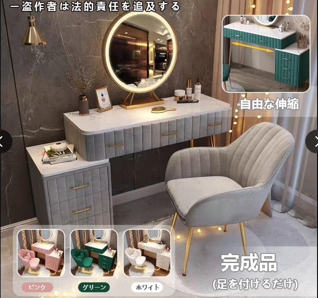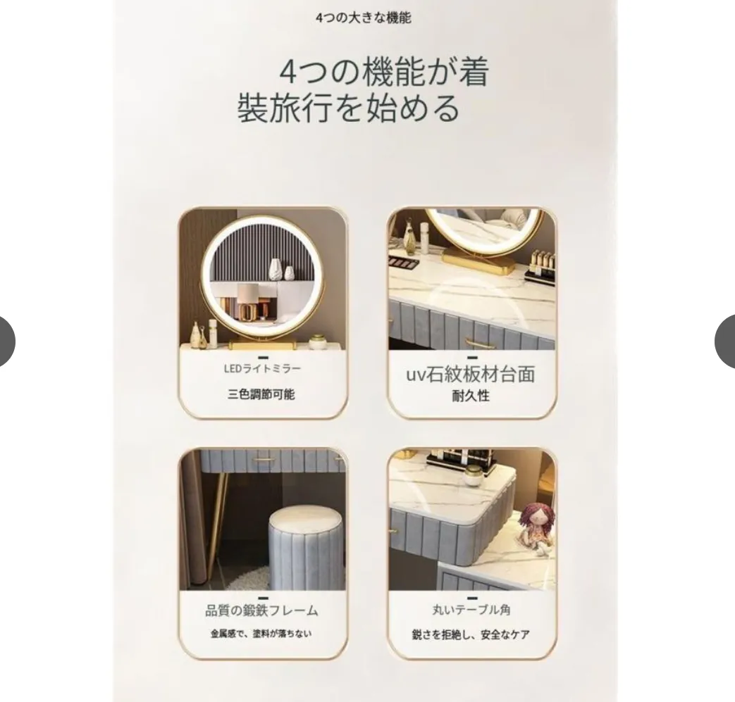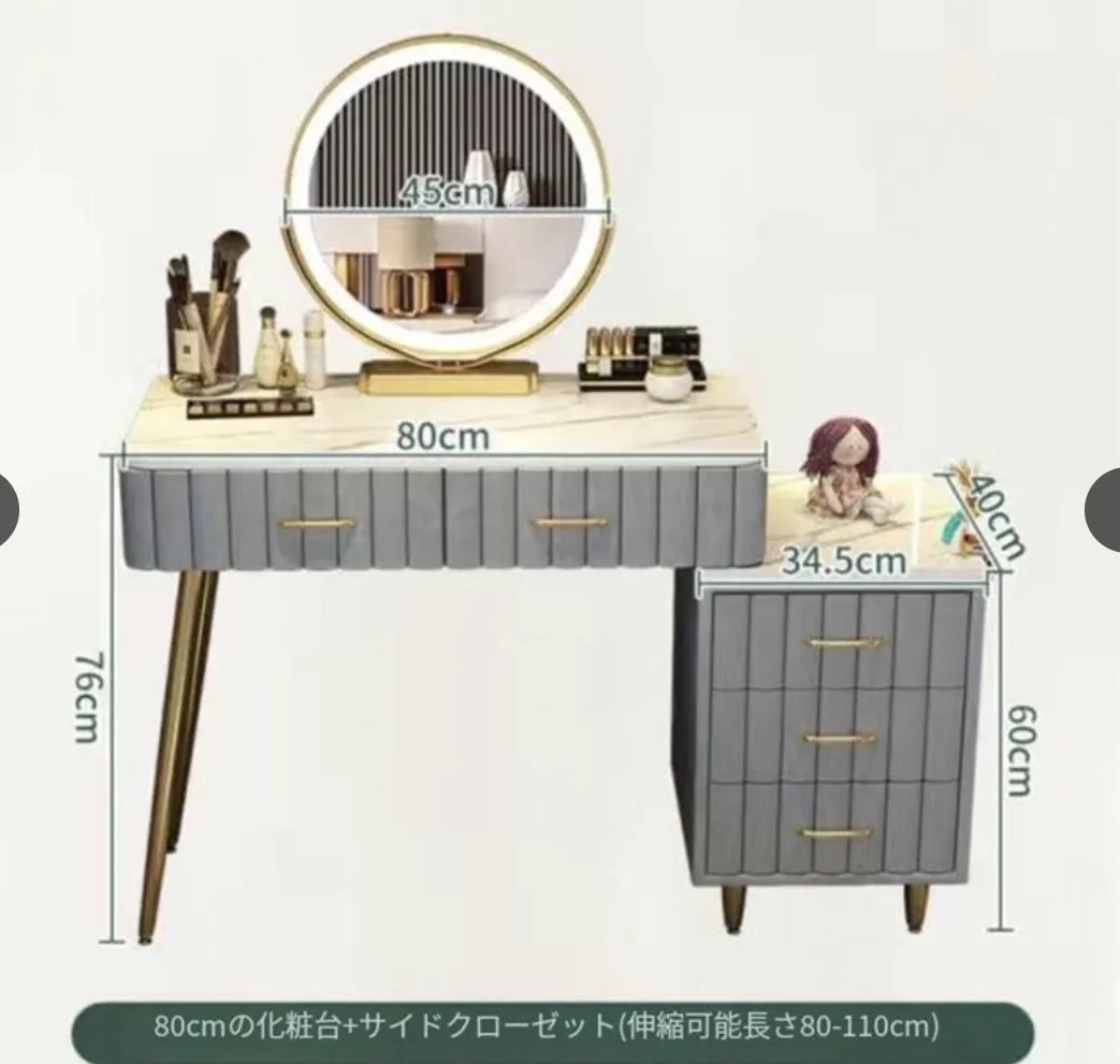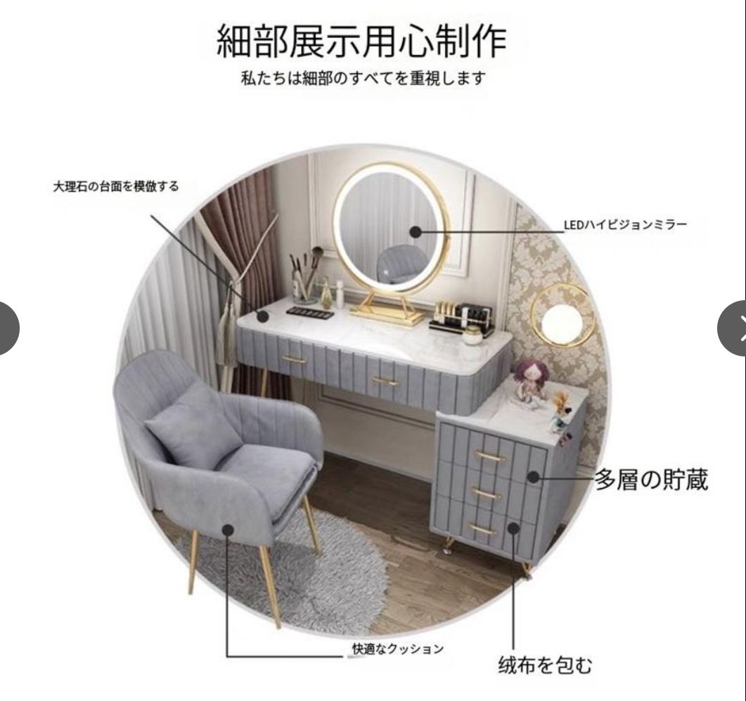 「収納力満点」大容量のドレッサーで数多くの引き出しがあってメイク道具とコスメを仕分けして収納しやすいです。大きな引き出しにはメイク道具、ドライヤー、雑誌を収納でき、 小さな引き出しにはジュエリ、ルージュなどの小物入れます