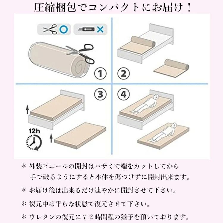 【 開封直後は、ウレタンフォームが非常に柔らかく使用に適しません。最低でも開封してから約24時間経過後に使用願います。約72時間程度で本来の厚み、硬さまで回復します。】】