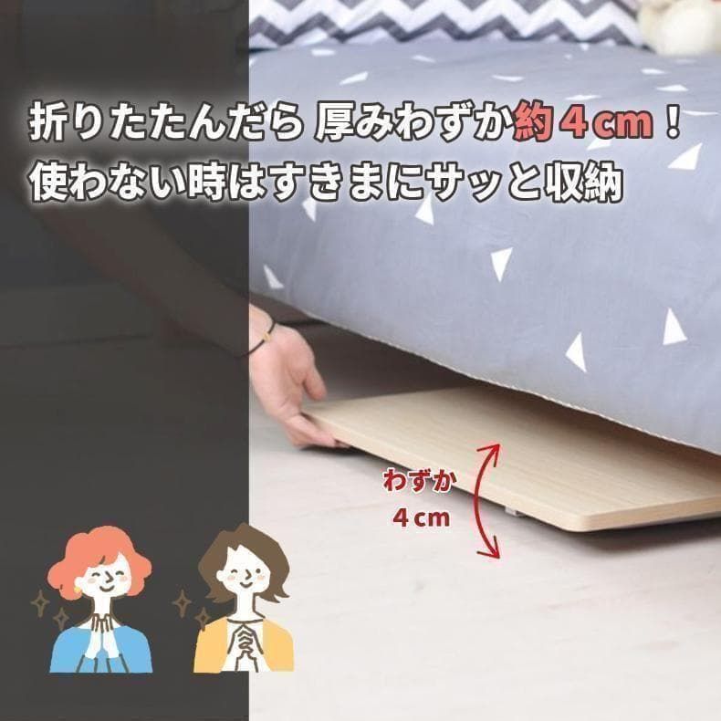 使わない時はサッと折りたたんで、ベッド下や家具のすき間へ収納可能。