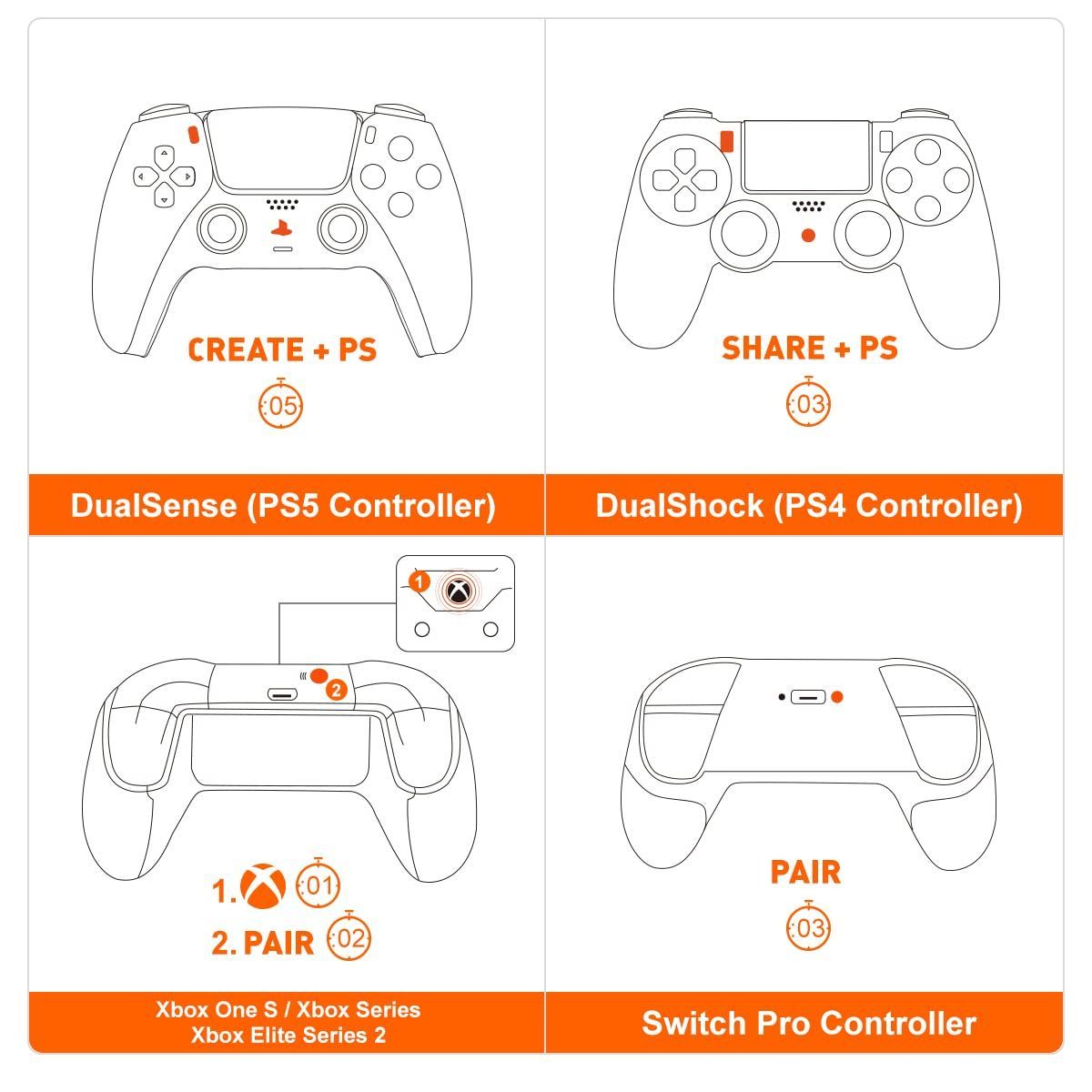 【プラグ&プレイ,接続簡単】Switch コントローラー コンバーターを対応デバイスのUSB端子に差し込みます。 2.対応コントローラーをオフしてから、ペアリングモードに調整します。3.switch ワイヤレス アダプターと対応コントローラーのインジケーターが点灯になり、接続成功。初回はペアリングが必要で、次回自動的に識別されることができます。