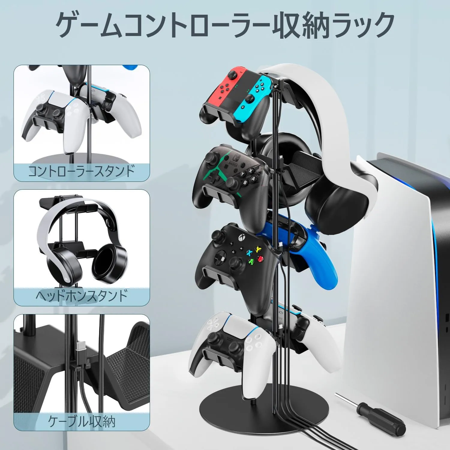 ゲームコントローラー収納ラック 4層対称設計 同時に8つ収納可能 Kytok コントローラー スタンド 組み立て簡単 ヘッドホンスタンド PS5/PS4/Switch/Xboxコントローラー対応 充電ケーブル収納