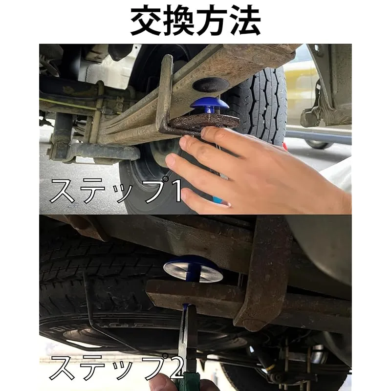 純正をネジで外して、ハイトダウンサポーターの方は穴に差し込むだけで、簡単に交換できます、片側で2個、左右で4個交換の必要です。