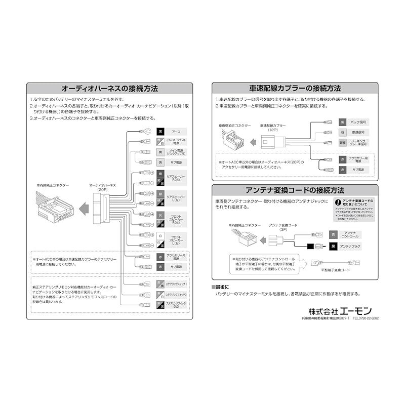 【ご購入の前に】本製品は車種別対応のため取り付ける車種の適合をエーモンホームページでよくご確認ください。専用オーディオ装着車には使用できません。