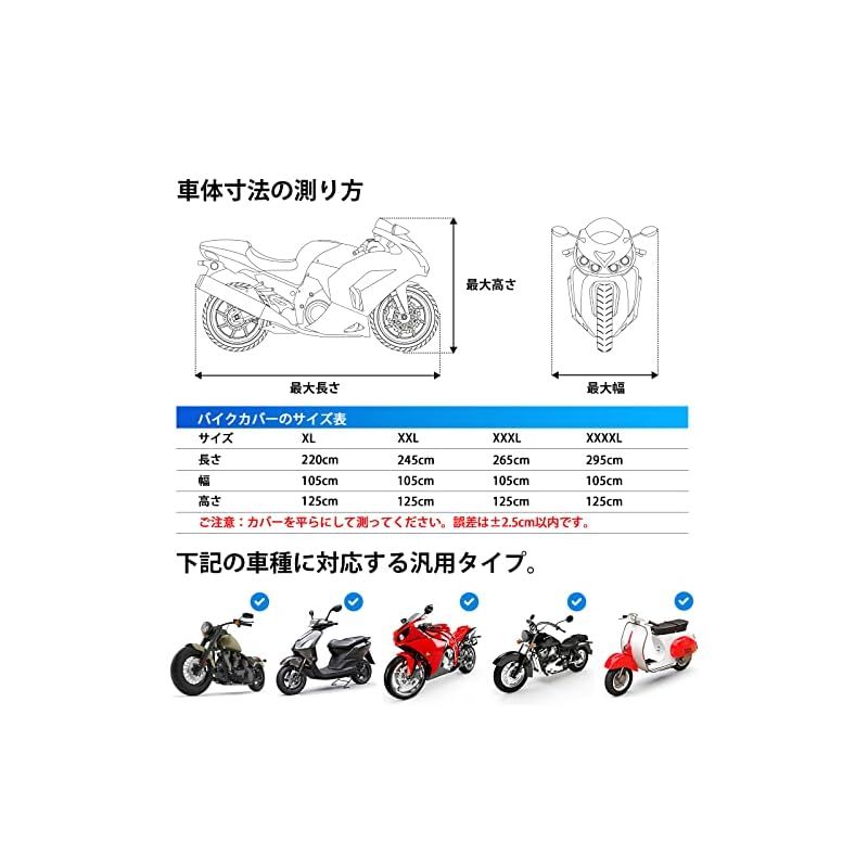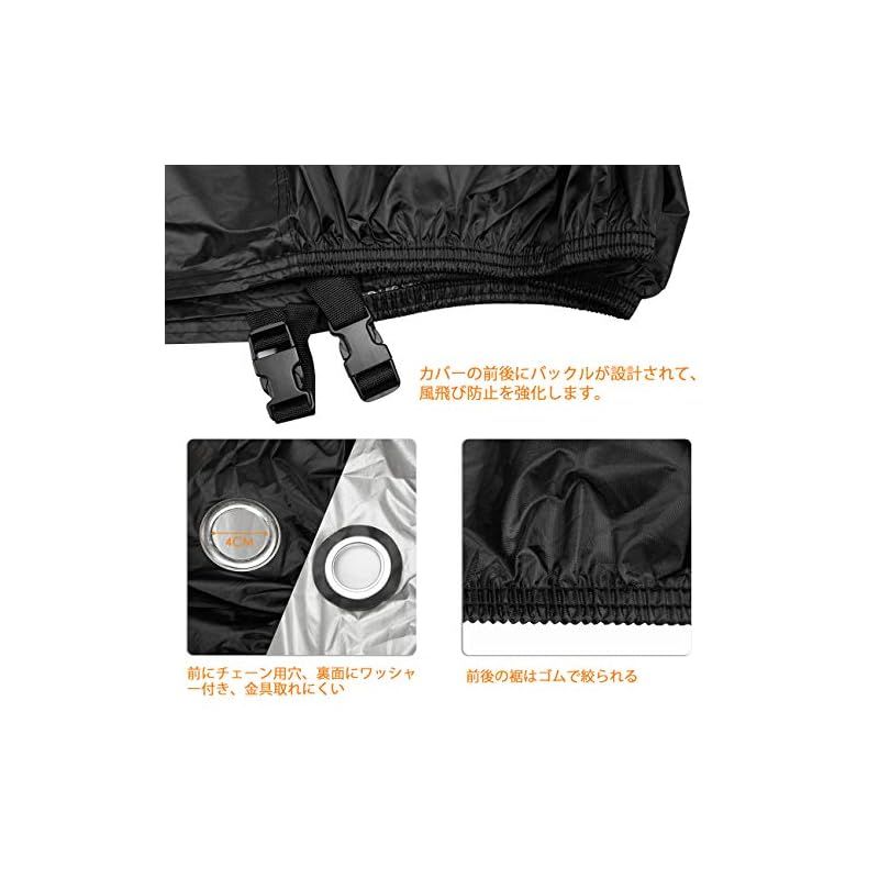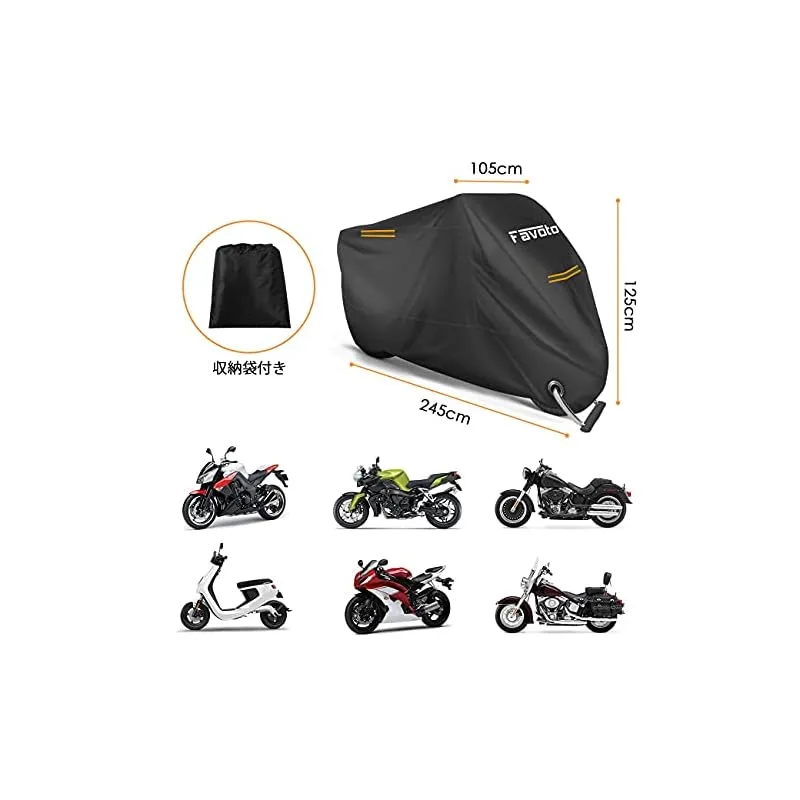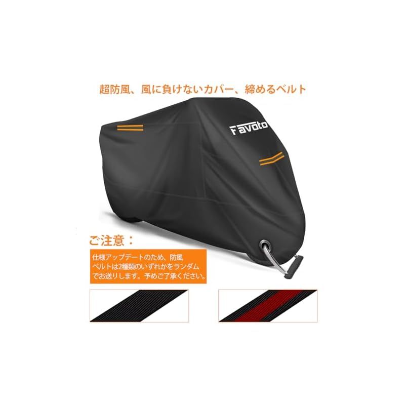 商品名:Favoto バイクカバー 厚手 高防風 防埃 防雨 防水 防雪 紫外線防止 UVカット 盗難防止 丈夫 2.5m防風ベルト付き ワンタッチバックル付き ロック穴付き 反射テープ付き 収納バッグ付き バイク車体カバー (245*105*125cm)