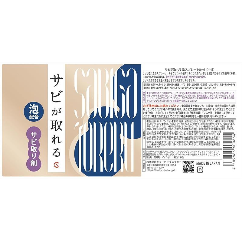 商品名:サビが取れる 泡スプレー300ml 錆取り剤 強力 サビ落とし 鉄粉除去 中性 低臭 速攻浸透分解 プロ仕様 チオグリコール酸アンモニウム配合